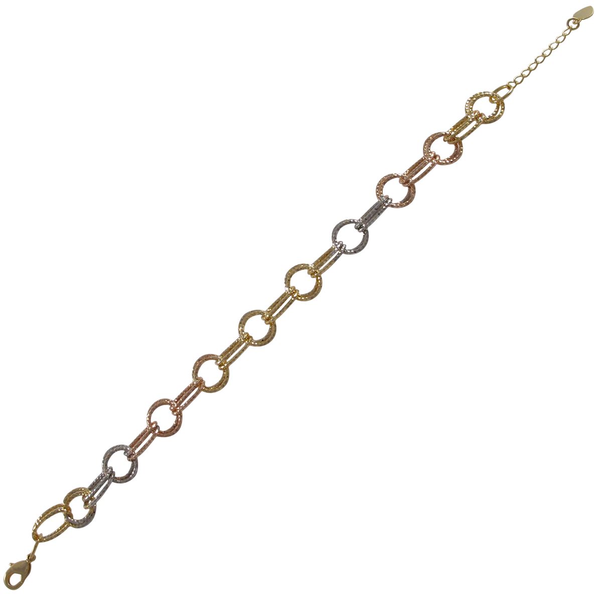 Tri Color Brass, Double Open Ovals And Circles Link Bracelet, 8&Quot; 1&Quot;