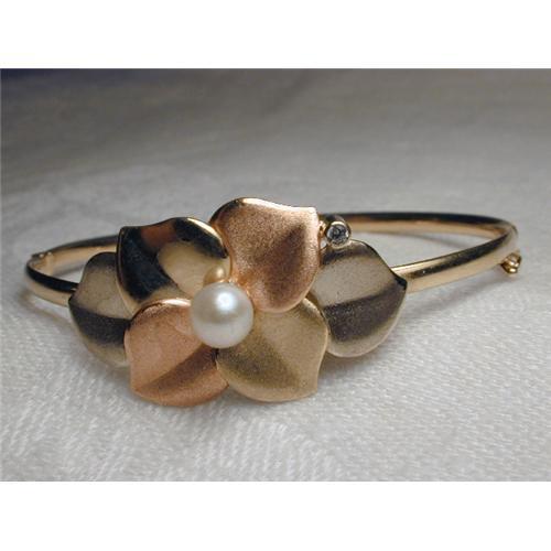 <tr><td>Title:Tri-Color Gold Diamond Pearl Bangle Bracelet</td></tr>