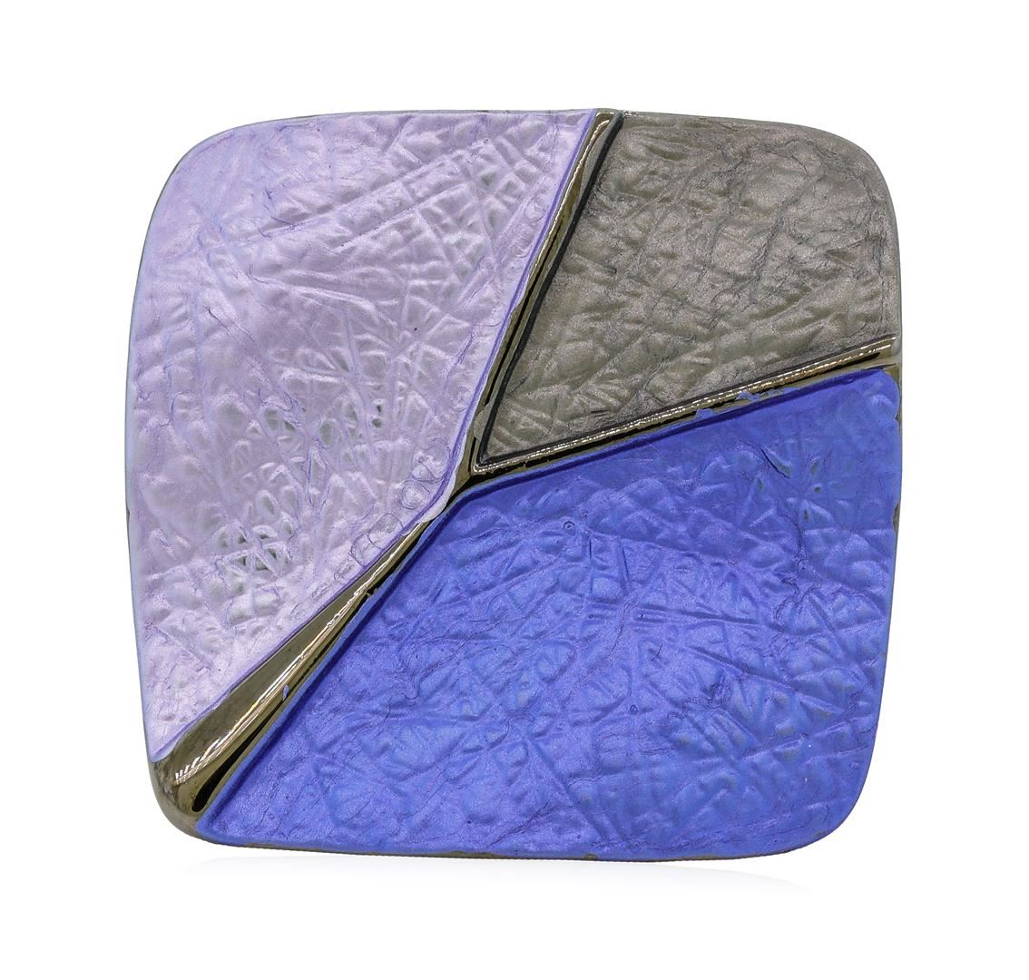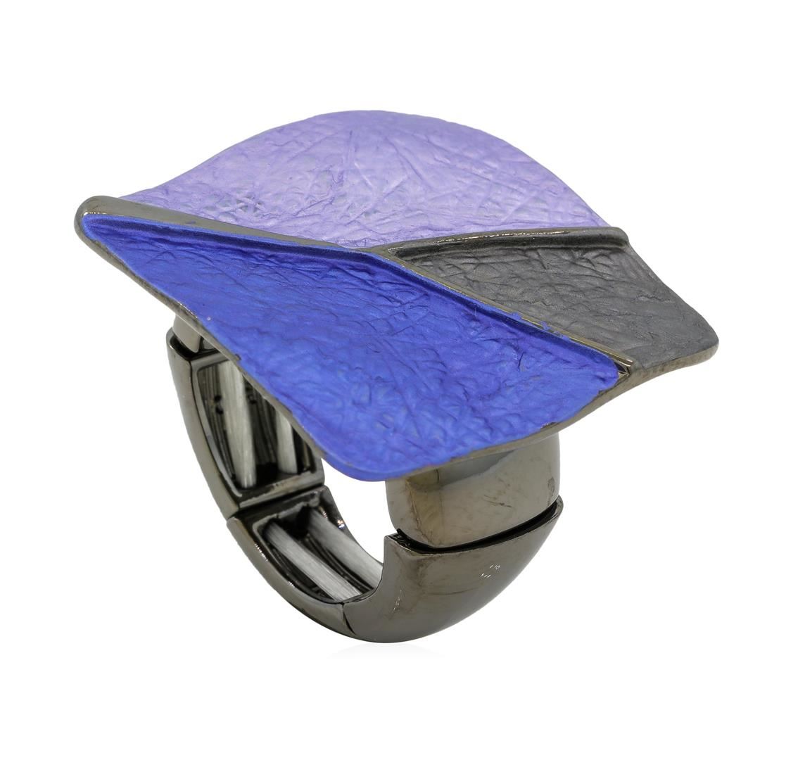 High end designer jewelry. Tri Color Hand Painted Square Ring - Rhodium Plated. Rhodium Plated Matte Metal. Blue/ Gray. Elastic. Total Weight: 11.3 grams.