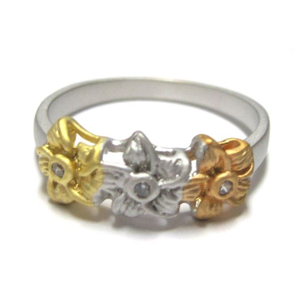 Tri Color Matte Sterling Silver Flower Ring, Size 4
