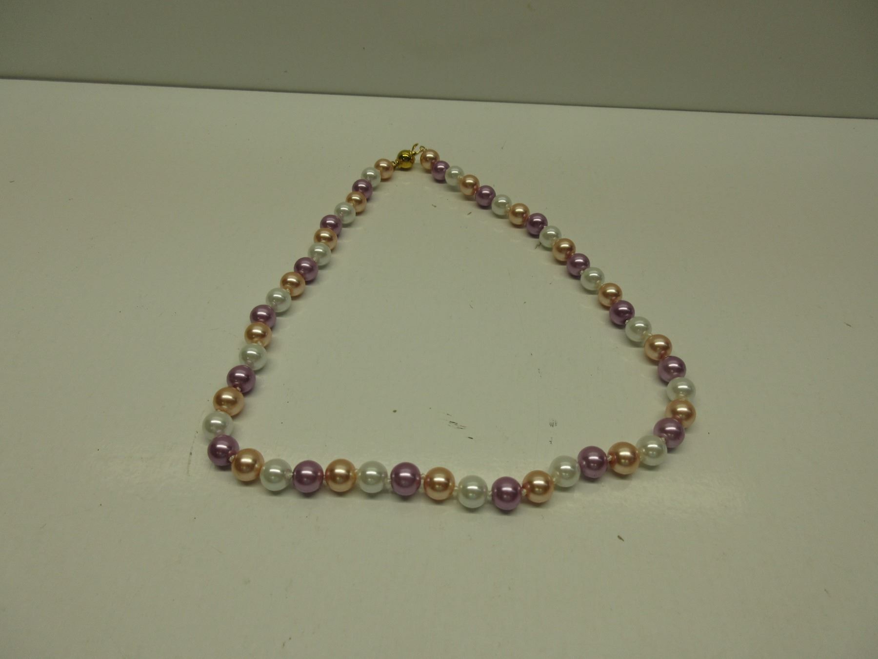 Tri Color Ocean Sea Shell Pearl Necklace - hand knotted