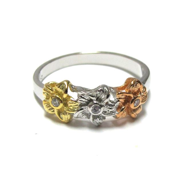 Tri Color Shiny Sterling Silver Flower Ring, Size 3