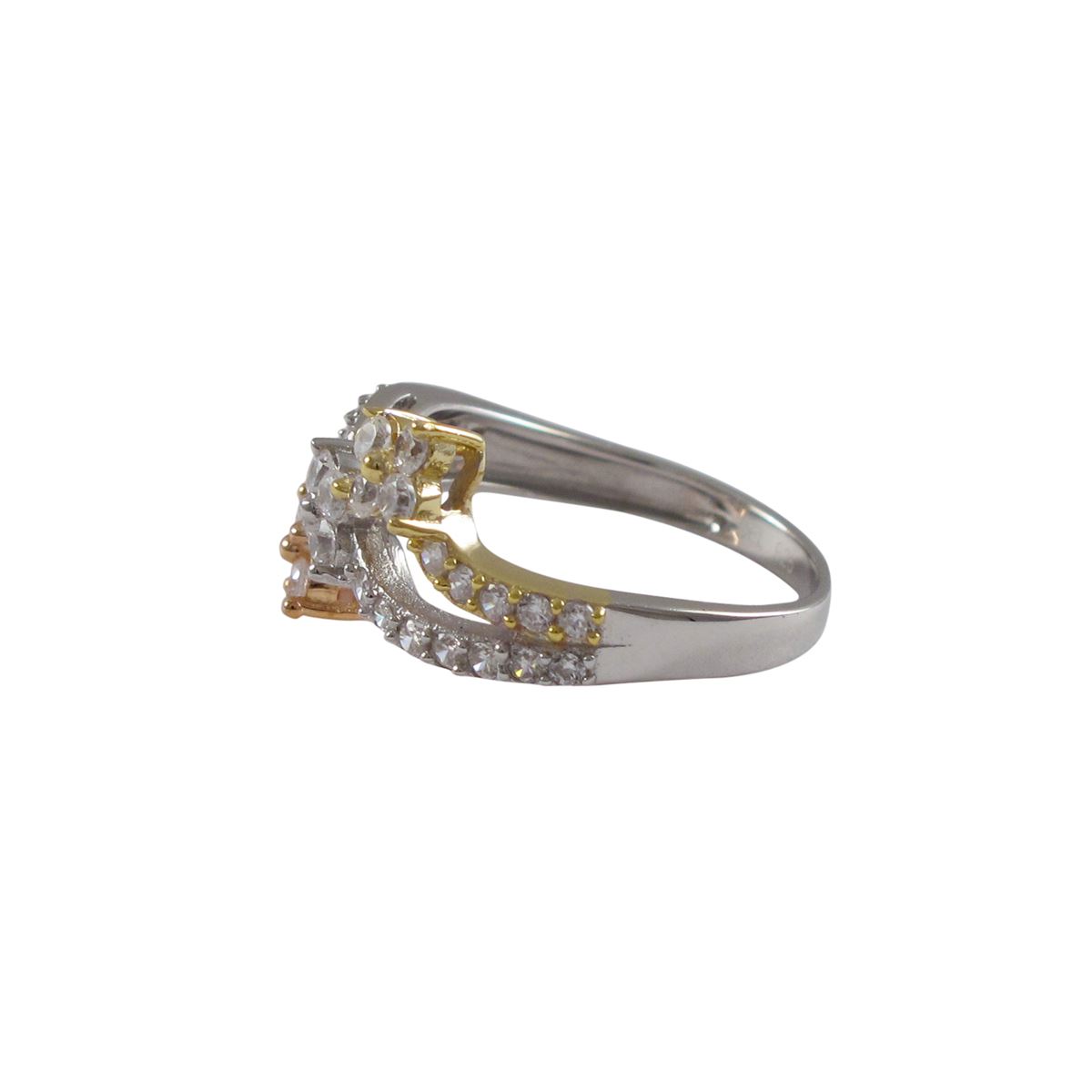 Tri Color Sterling Silver, 3 Flower Ring With White Czs, Size 8 Dimensions: 20Mm Wide X 13.8Mm Long