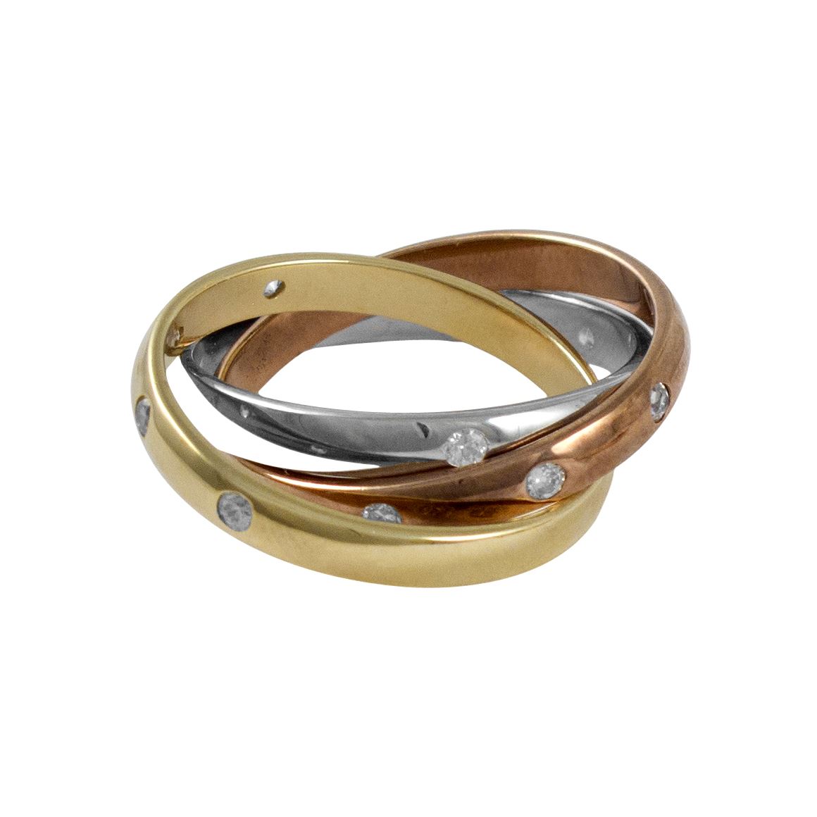 Tri Color Sterling Silver Cartier Style Ring, Size 7
