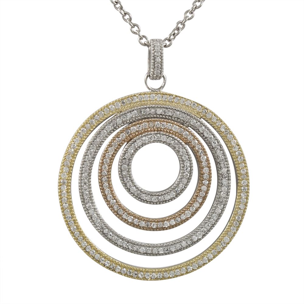 Tri Color Sterling Silver, White CZ, Four Circle Pendant, 1.73