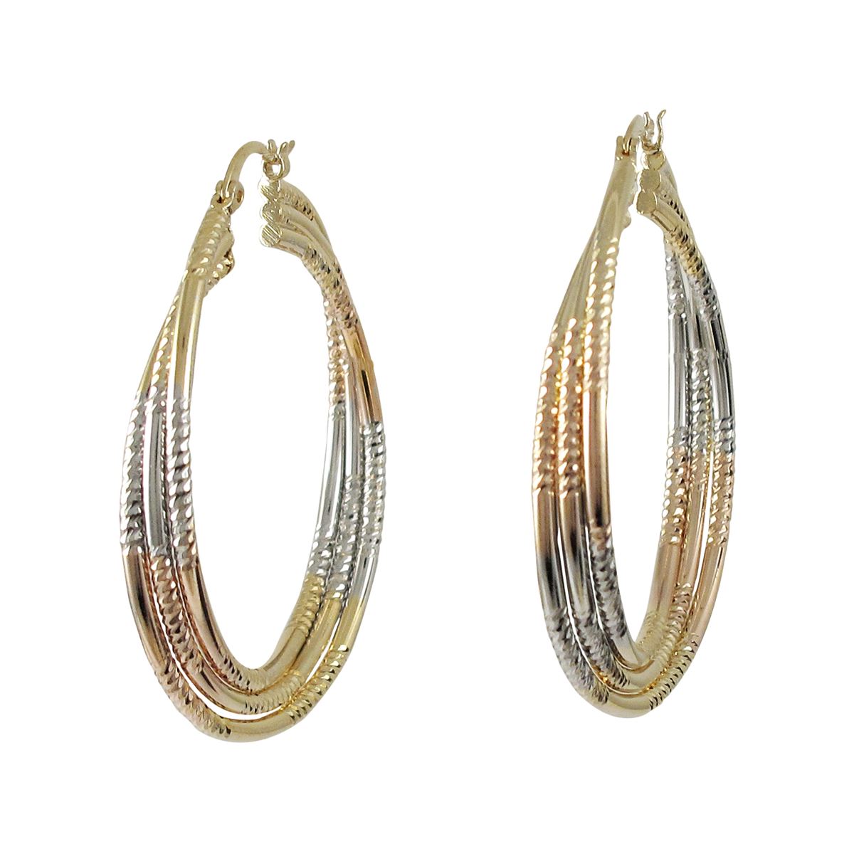 Tri Color Three Ring Brass Hoop Earrings, 43Mm Long