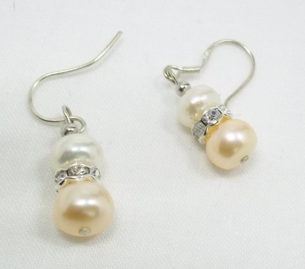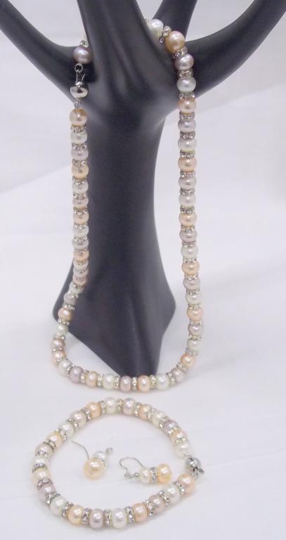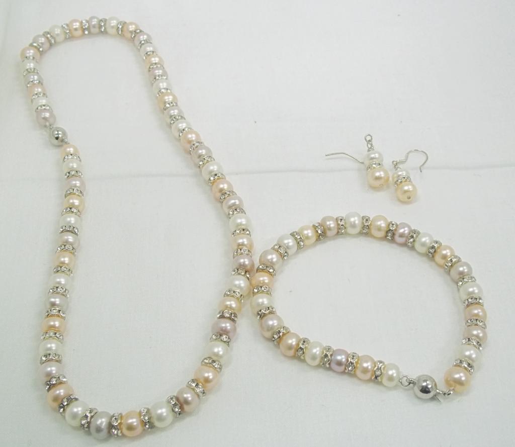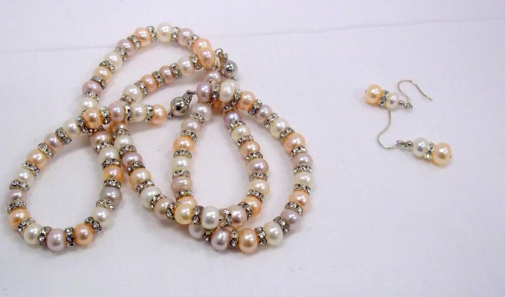 Tri Colored Pearl Necklace, Bracelet and Earrings