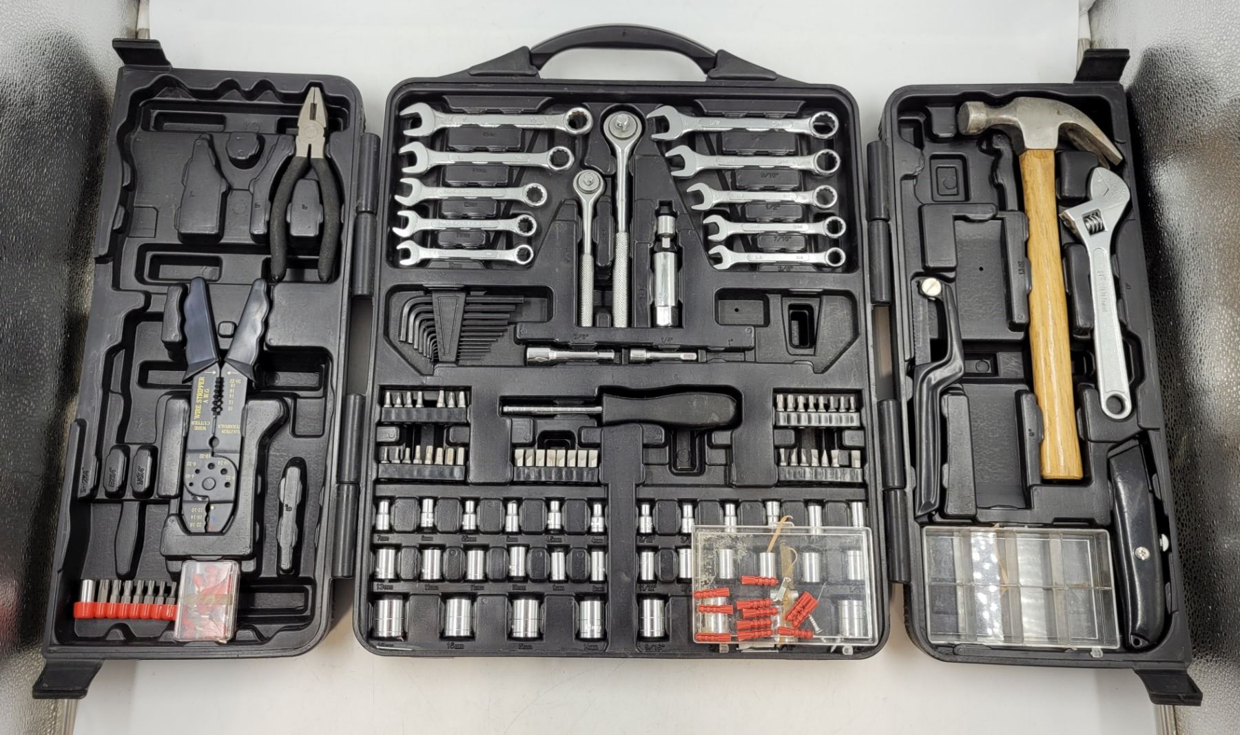 Tri-Fold Tool Box with Assorted Tools and Sockets