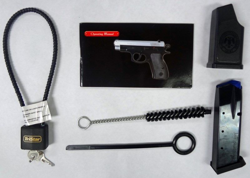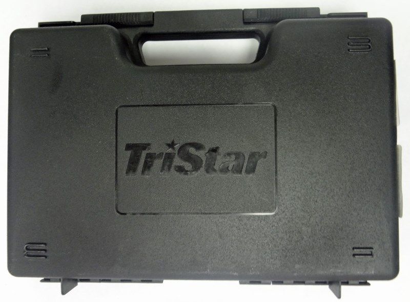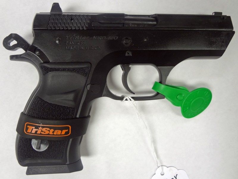 Tri-Star T-100 9mm. New in box. Black polycoat finish. Double action. Stock: checkered black polymer. Capacity: 15+1. 2 Magazines. Safety: manual, frame mounted. Sights: FT: single Dot. RR: Two-dot. Weight: 26.24oz. EST:$450-$500