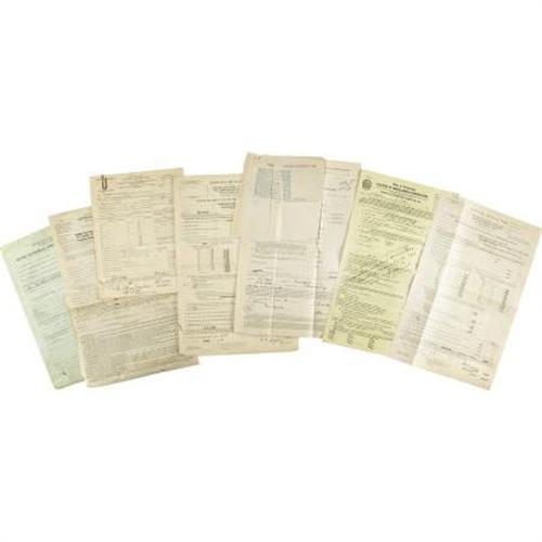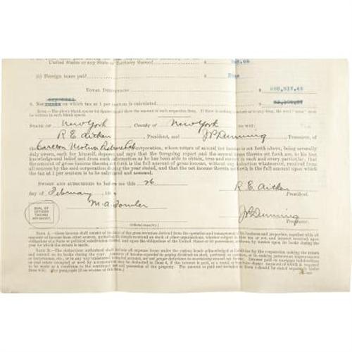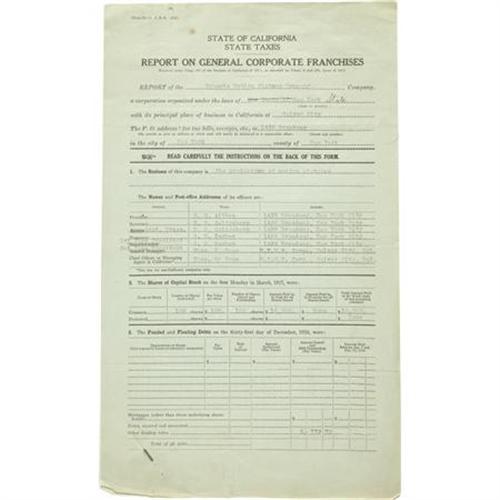 <B>Triangle Motion Picture Company Financial Documents Signed by Company Principals. </B></I> An archive of over 75 financial documents spanning from 1913 to 1921 involving Triangle Motion Picture Company and its auxiliary units Keystone, Majestic, Reliance, and New York Motion Picture Corp., many signed by Triangle's principals Harry Aitken and his brother Roy -- both film pioneers and producers of <I>Birth of a Nation.</B></I> Related financial documents also include tax statements for Broncho and Domino Pictures, and Carlton Motion Picture Laboratories, as well as documentation of Triangle Distributing Corporation's dissolution in 1921. In overall Very Good condition with center creasing, moderate age-toning, minor nicks to borders, and rusting from original clips. <I>From the Thomas H. Ince Archives.</B></I><BR><BR><b>Shipping:</b> Books & Catalogs (<a target="_blank" href="http://www.heritageauctions.com/common/shipping.php">view shipping information</a>)