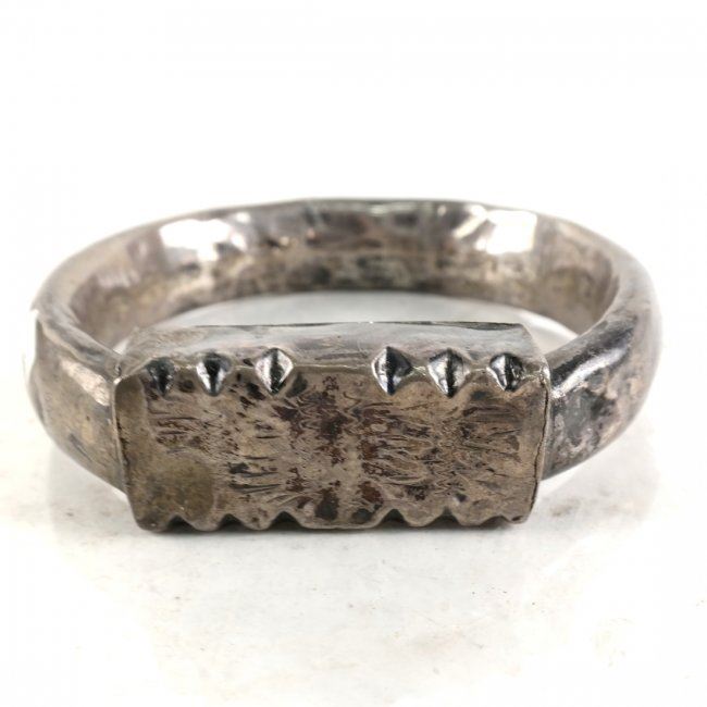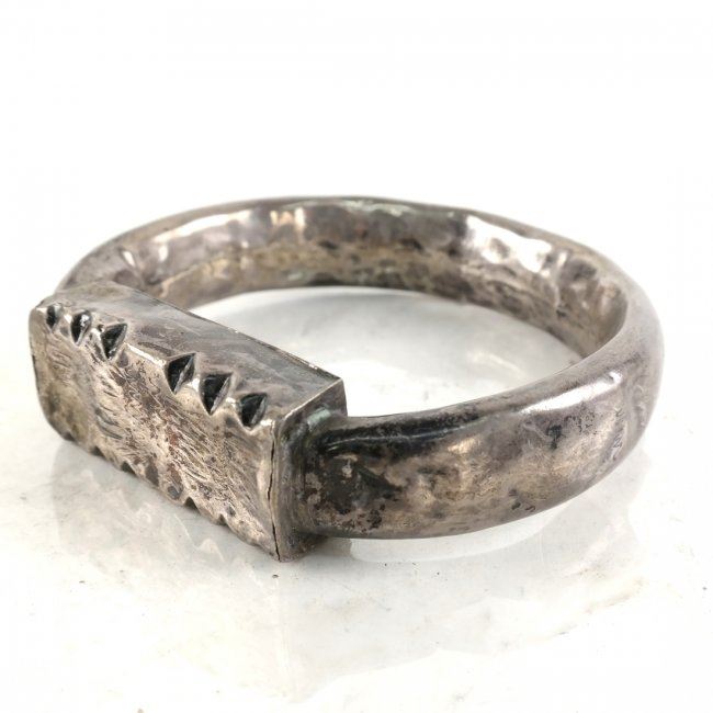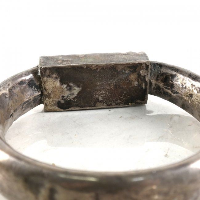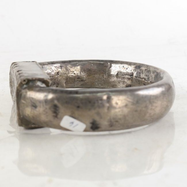Tribal bracelet crafted of low-grade silver. [4 3/4" Dia x 3/4" W]. Significant wear, dents and surface scratches overall. 3 ozt.
