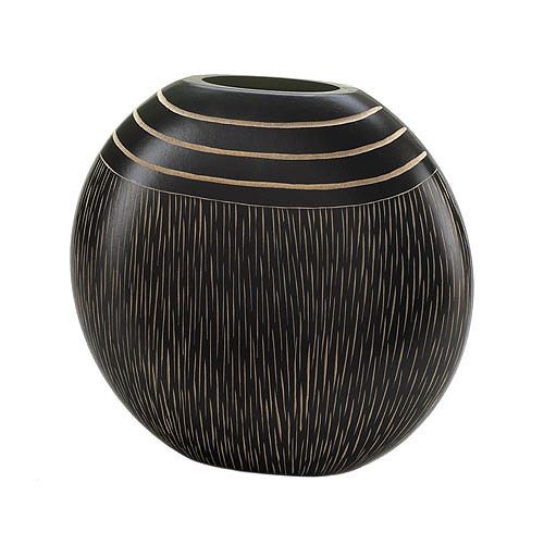 Tribal Decorative Vase **|**|** Decorate your space with this gorgeous black wooden vase and its never-ending style. The carved stripes and lines show the wood underneath its black finish, and it will be stunning with faux greenery or simply by itself on your mantel or shelf.Description Details Item weight: 3.5 lbs.Product Dimensions: 15-1/2 x 4" x 14-1/2" high.Product Material: MDF wood.UPC Code: 849179020187.Packaging: 1 EA"