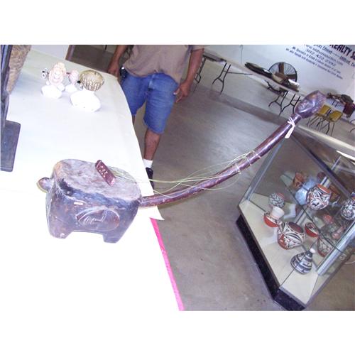 Tribal Harp / Guitar Dan Lute Very Old With Carved Facial Figures 32" L