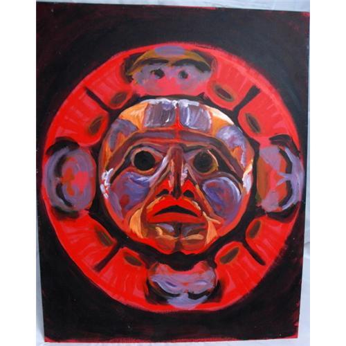 Tribal Mask Oil Painting unsigned.  It measures 20" x 16".    It is a colorful oil on stiff artist paper. I is like the same type of cardboard like white paper that mats are cut from.  There is no frame.   <p>  The condition is great.