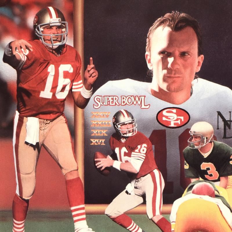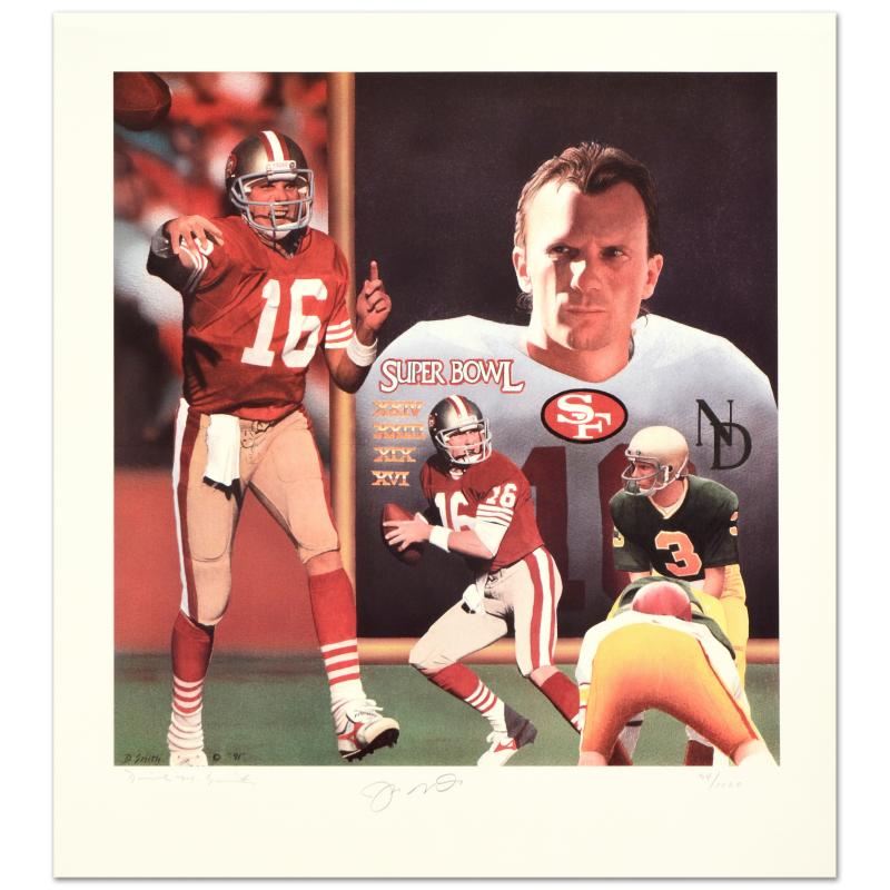 "Tribute" is a limited edition lithograph on paper dated (1991) by Daniel M. Smith, numbered and hand signed by both the artist and Joe Montana! Includes Certificate of Authenticity! Measures approx. 19" x 21" (with border), 16" x 17" (image).