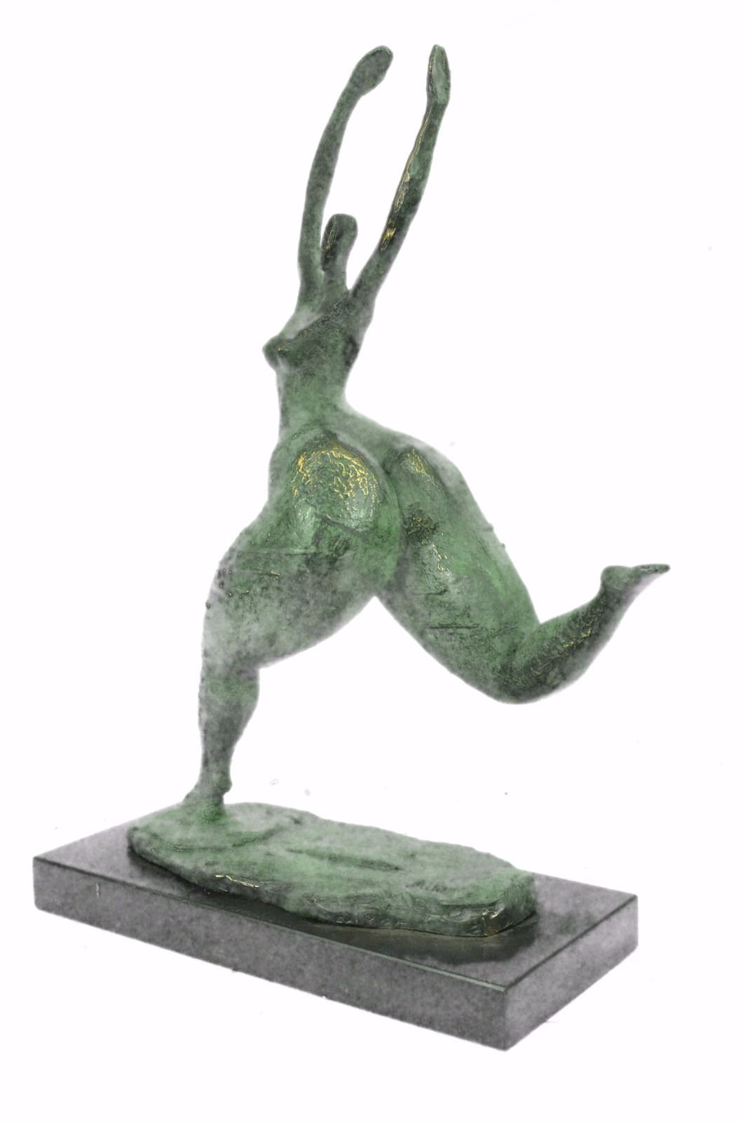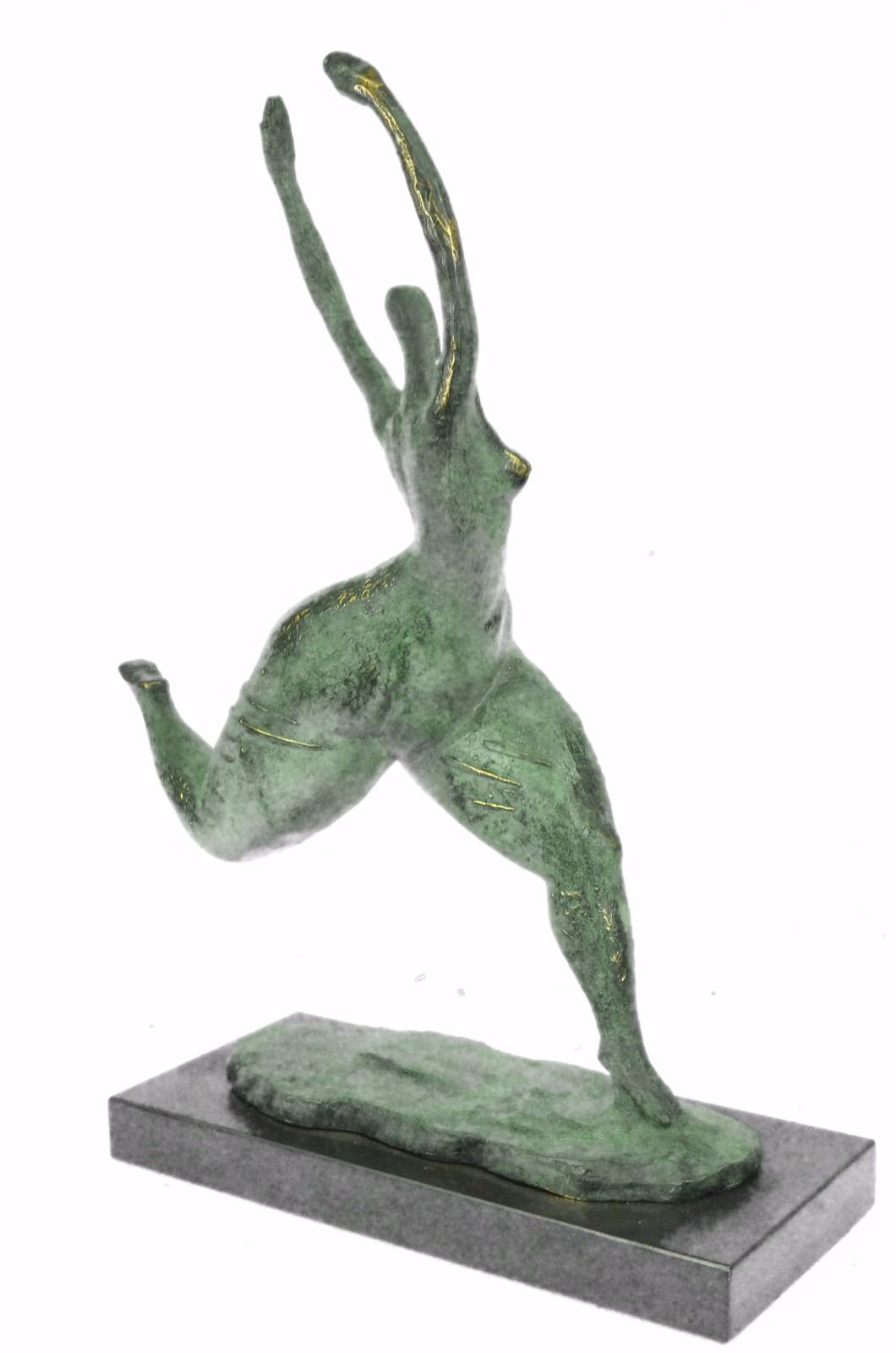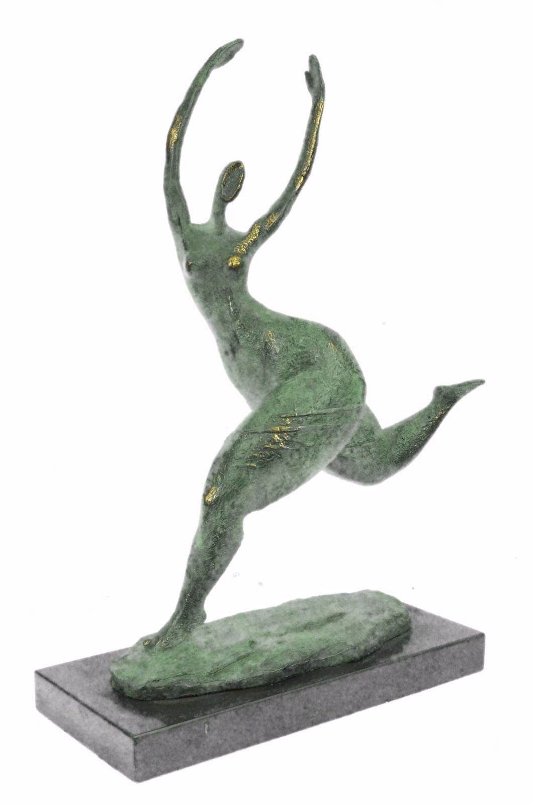 An Abstract Female Dancer Sculpture. You Can Just Tell This Is A Powerful Dancer In The Sharpness Of Her Position. This Wonderfully Curvaceous Woman Bears The Wide Hips Commonly Attributed To Femininity And Fertility. It Is A 100% Bronze, Cast Using The Lost Wax Method. It Stands Tall On A Black Marble Base. Bronze Dimensions With Marble Base: Height 19 X Width 14 inches. Weight: 16 Lbs.
