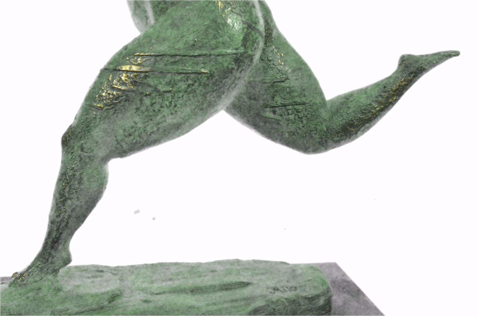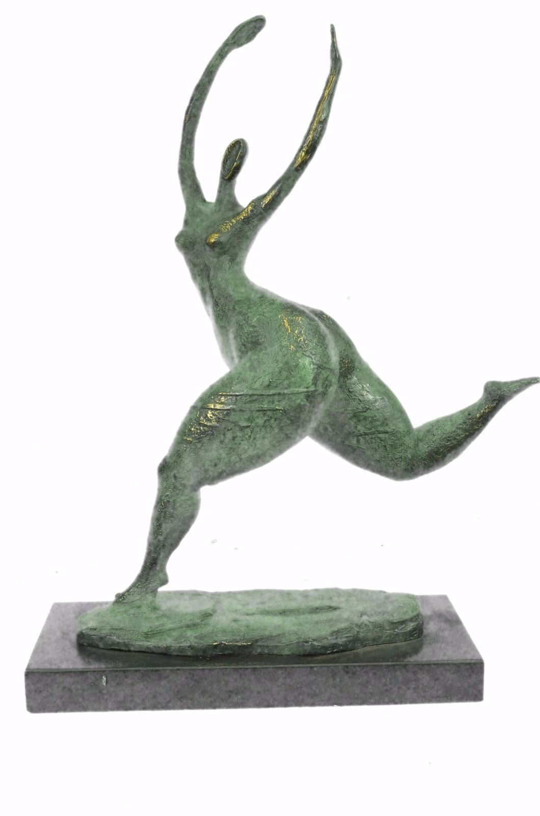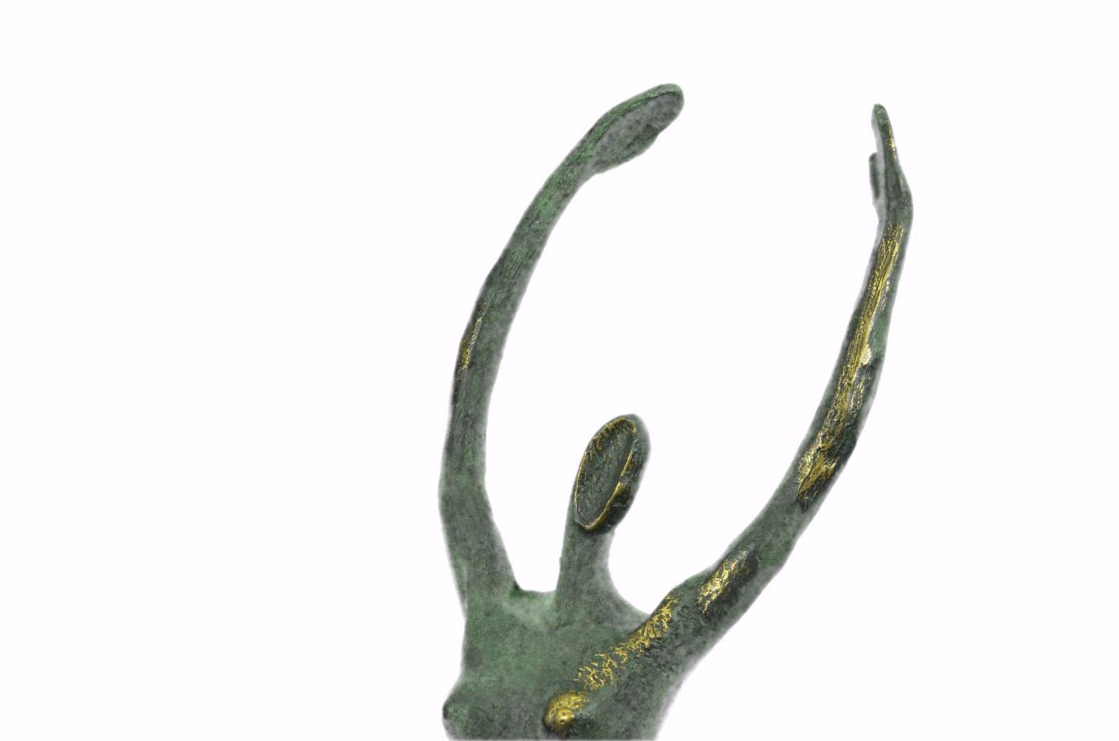 An Abstract Female Dancer Sculpture. You Can Just Tell This Is A Powerful Dancer In The Sharpness Of Her Position. This Wonderfully Curvaceous Woman Bears The Wide Hips Commonly Attributed To Femininity And Fertility. It Is A 100% Bronze, Cast Using The Lost Wax Method. It Stands Tall On A Black Marble Base. Bronze Dimensions With Marble Base: Height 19 X Width 14 inches. Weight: 16 Lbs.