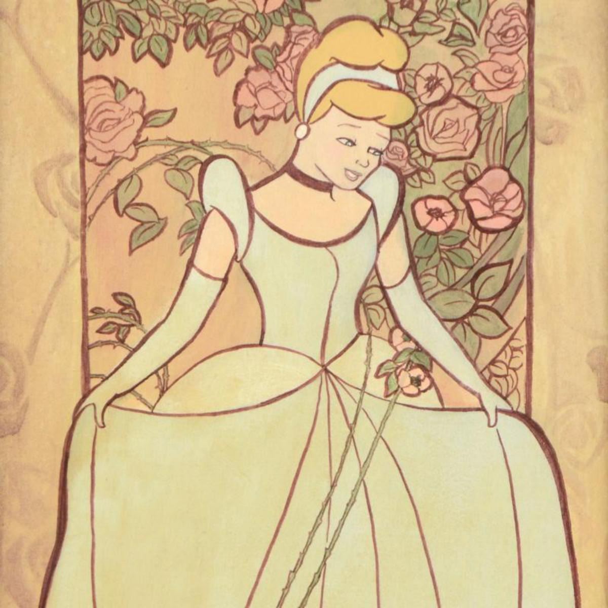 "Cinderella" is a limited edition giclee on canvas, numbered 110/395 and hand signed by Tricia Buchanan-Benson. This piece is licensed by Disney Fine Art. This piece comes framed. Includes Certificate of Authenticity! Measures approx. 19.5" x 34.5" (with frame); 15" x 30" (image). Reference #: 216770