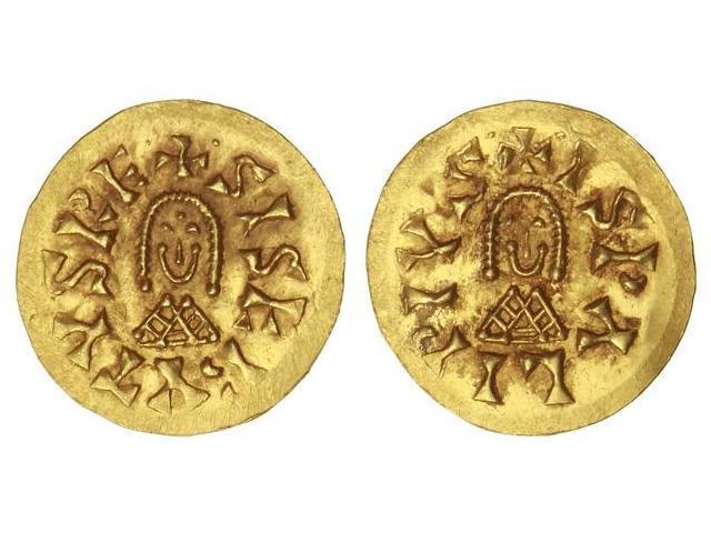 Triente. - SISEBUTO (612-621). - ISPALI (Baética). - Anv.: ¶SISEBVTVS RE¶. Rev.: ¶ISPALI PIVS¶. 1,46 grs. AU. Ch.148 sim.; Miles-187f; VCC-219.26. EBC+. - -
