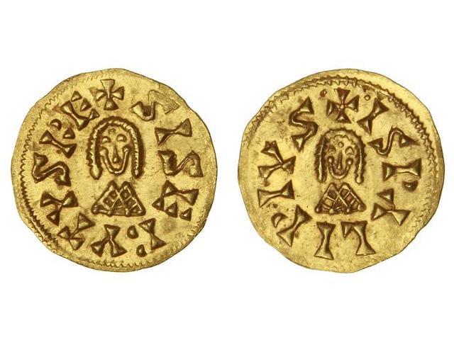Triente. - SISEBUTO (612-621). - ISPALI (Baética). - Anv.: ¶SISEBVTVS RE. Rev.: ¶ISPALI PIVS¶. AU. Miles-187c; VCC-219.8. EBC. - -
