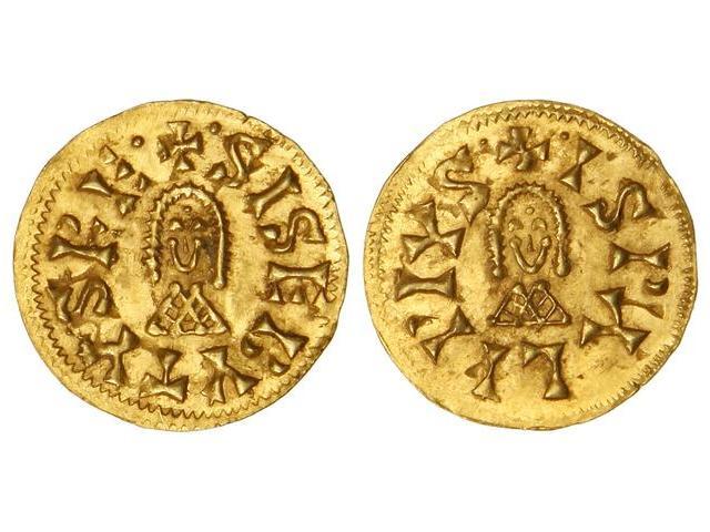 Triente. SISEBUTO (612-621). ISPALI (Baética). Anv.: ¶SISEBVTVSRE¶. Rev.: ¶ISP¶LI PIVS¶. AU. Miles-187f; VCC-219.26. EBC.