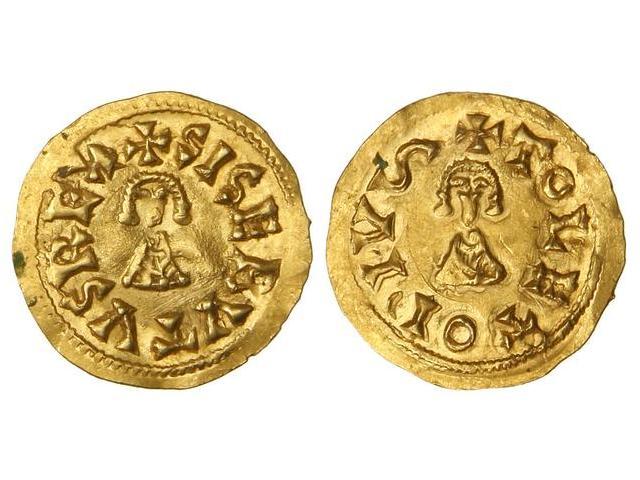 Triente. SISEBUTO (612-621). TOLETO (Carthaginensis). Anv.: ¶SISEBVTVS RE¶. Rev.: ¶TOLETO DIV¶. AU. Miles-183a; VCC-229.5. EBC-.