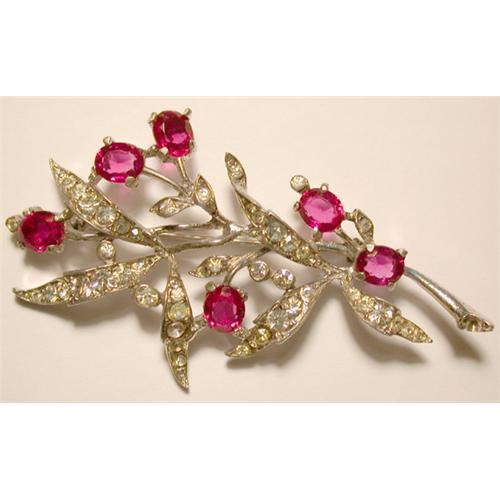 Trifari in Sterling silver. Always hard to find .And the red stones in this brooch are beautiful. </em></td>