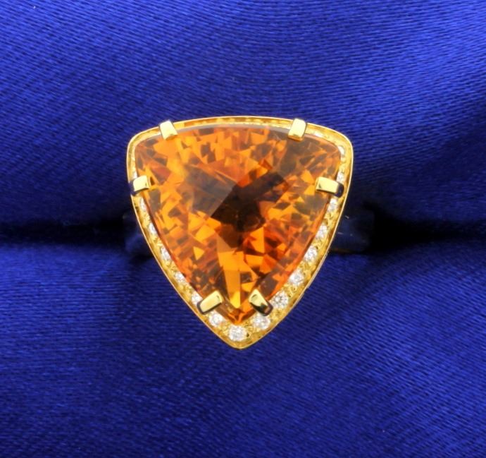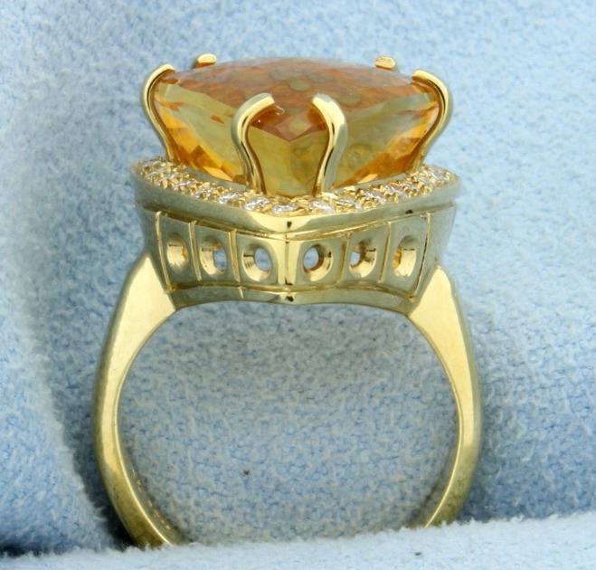 14.5x14mm citrine "AAA" quality, excellent cut. 1/4 ct TW of F color /VS clarity Diamonds. Size 5. 8.6g