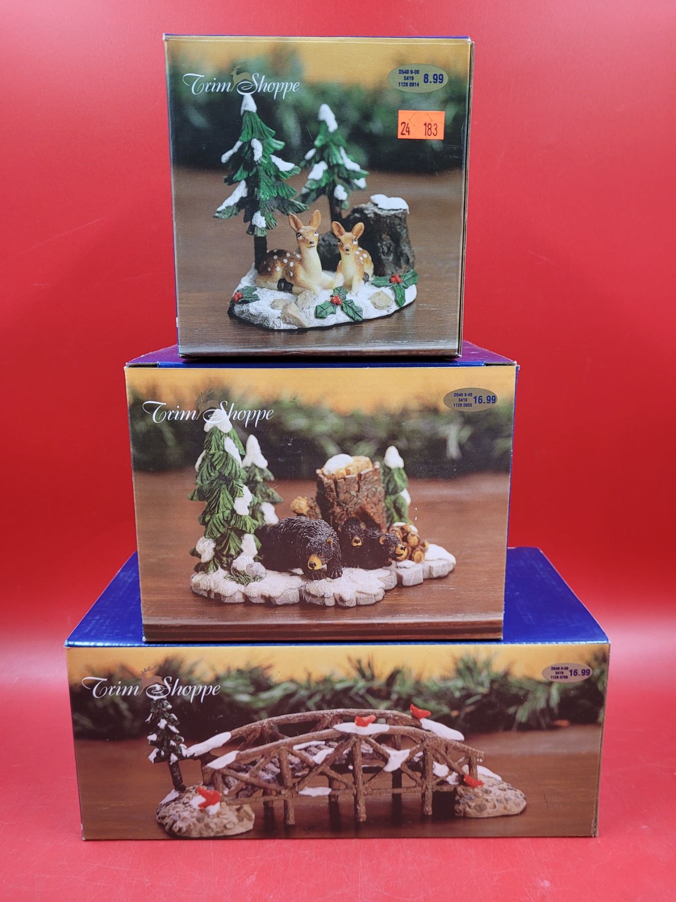Trim Shoppe Winter Village Figurines w/ Deer, Bears, & Bridge