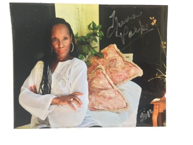 Two signed autographs from Trina Parks personal collection of her modeling for a magazine and for a newspaper article in Palm Springs, CA in 2019 and 2012. Trina Parks was the first African American singer and dancer featured in the Palm Springs Follies for 6 years from 2002-2008. (photos range slightly in size, most are approx. 8 1/2" x 11)