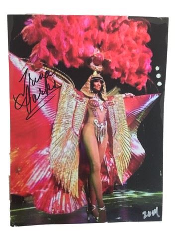 Two signed autographs from Trina Parks personal collection during her time performing in the Palm Springs Follies where she performed for 6 years. Trina Parks was the first African American performer in that show. Trina Parks was the first African American singer and dancer featured in the Palm Springs Follies for 6 years from 2002-2008. (photos range slightly in size, most are approx. 8 1/2" x 11)