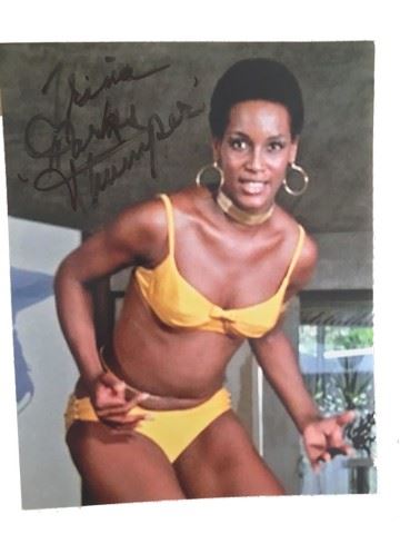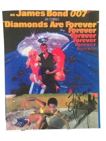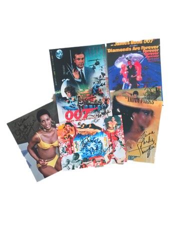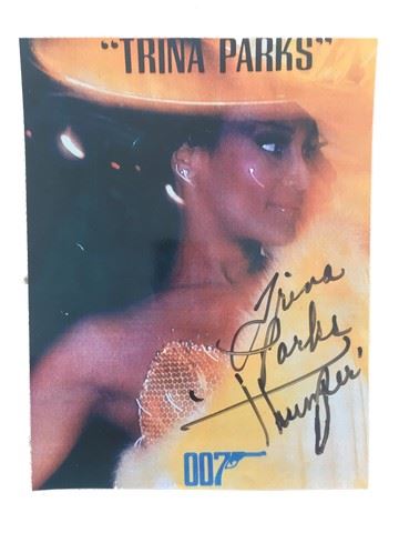 Trina Parks collection of five autographed photos featuring her on the set of "007" and press images (photos range slightly in size, most are approx. 8 1/2" x 11). Trina Parks was the first African American singer and dancer featured in the Palm Springs Follies for 6 years from 2002-2008.