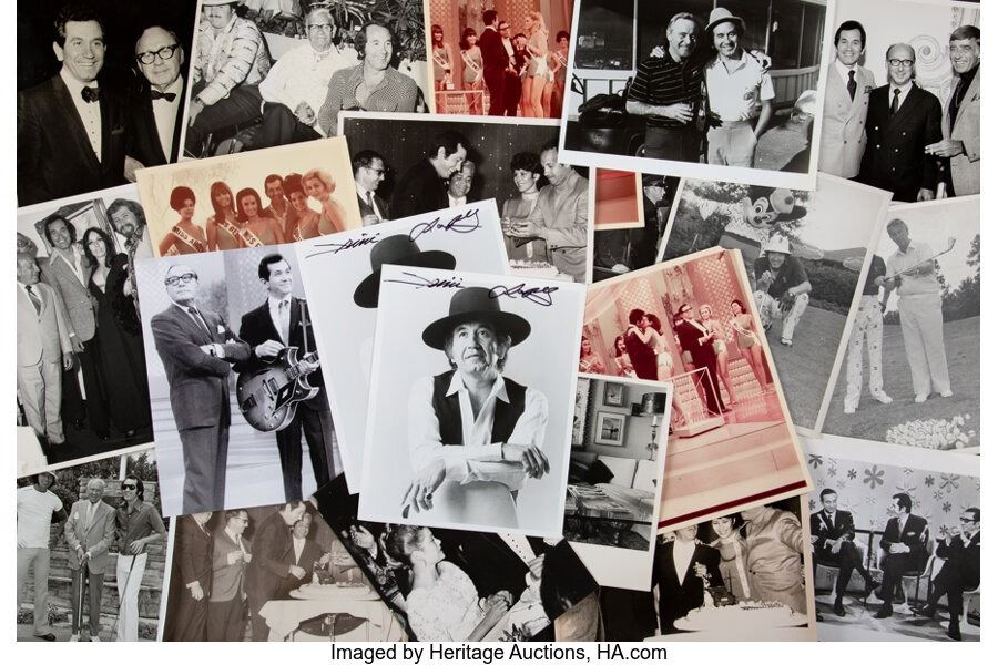 Trini Lopez Archive of Photos (45). A collection of 45 photos (three in color and 42 in black and white) of Trini throughout his career, of various sizes. Includes one signed by Trini with a black felt tip. Pictures include live shots, photos with various notable people (including Ed Sullivan), at home, and on a golf course. Overall, in Very Good condition with some creasing and wear. COA from Heritage Auctions.