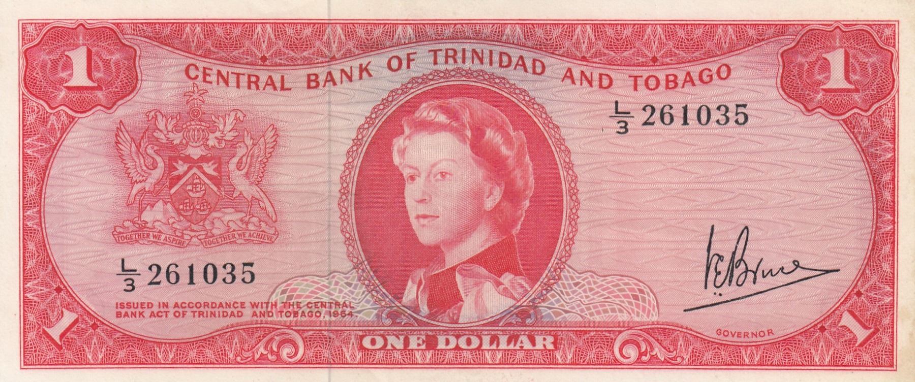Trinidad and Tobago, 1 Dollar, 1964, XF, p26cbr/Queen Elizabeth II portrait, serial number: L/3 261035