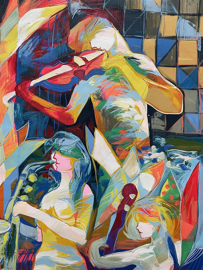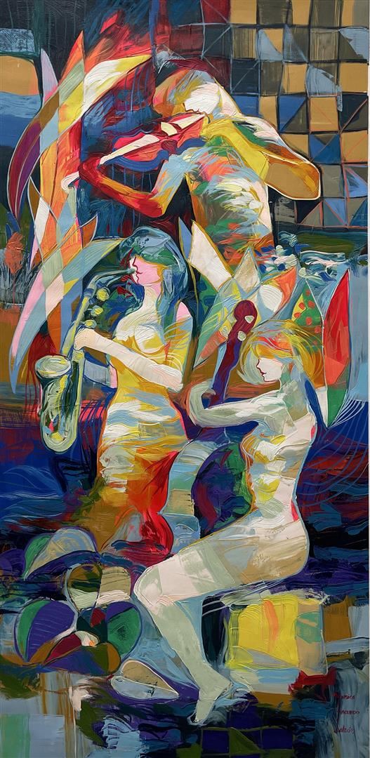 Fascinating original oil on canvas. Hand signed by artists. Artwork comes with a certificate of authenticity. This artwork comes rolled. Size 30x63"