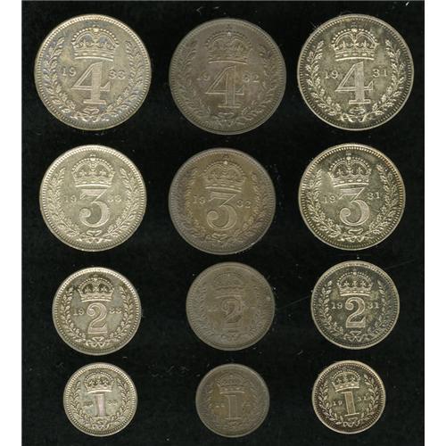 <B>Trio of 1930s Maundy sets: </B></I>All are S-4043. 1931, 1932, 1933, AU-Unc., light toning.