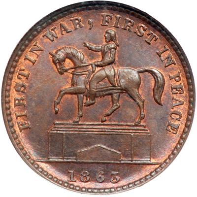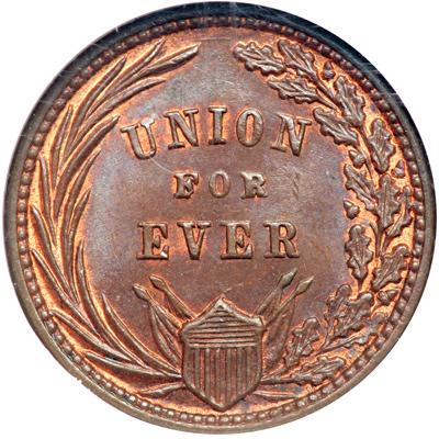 Trio of Patriotic US Civil War Tokens, all NGC graded MS66 Brown. Includes 1863 Fuld 174/272 (First in War/ First in Peace), 1863 Fuld 240/341A (Union For Ever with Monitor Warship), and 1864 Fuld 241/336B (Monitor Warship with Our Navy). The first and last retain considerable original mint color. A beautiful trio, all real gems. The attributions are noted on the NGC grading labels. Lot of 3 coins.