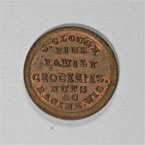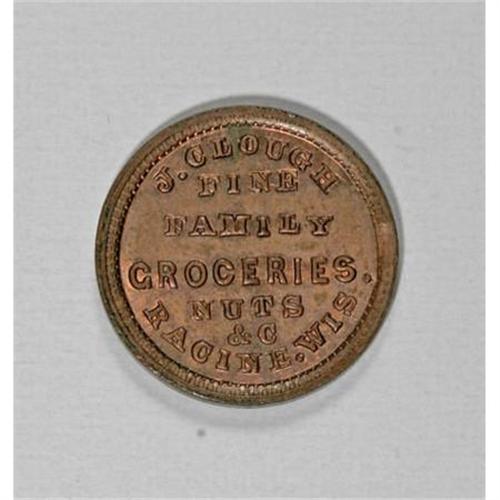 <B>Trio of Wisconsin Civil War Merchant Tokens.</B></I> Civil War merchant tokens from Wisconsin issued by J. Clough of Racine, Wisconsin, <B>Fuld-WI700B-1a, R.7; WI700B-2a, R.5; </B></I>and <B>WI700B-3a, R.8.</B></I><BR><BR><b>Shipping:</b> Coins & Currency (<a target="_blank" href="http://www.heritageauctions.com/common/shipping.php">view shipping information</a>)