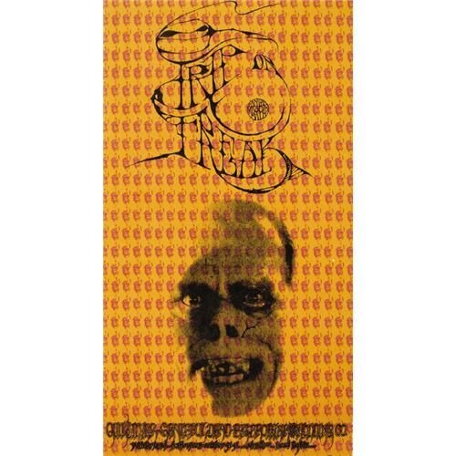<B>Trip or Freak Concert Handbill (1967)</B></I> One of the most highly sought after pieces by collectors is the legendary "Trip or Freak" poster from Halloween 1967. Even harder to find is the handbill for the show, which is offered here. The image was created, and lettered, by the team of Stanley Mouse, Alton Kelly, and Rick Griffin. Bands at the show included Quicksilver Messenger Service, Big Brother and the Holding Company, and the Grateful Dead. This handbill is in Near Mint condition and measures 3.75" x 7.25". It also is pictured in the book "The Art of Rock" and bears the designation A.O.R. 2.183.