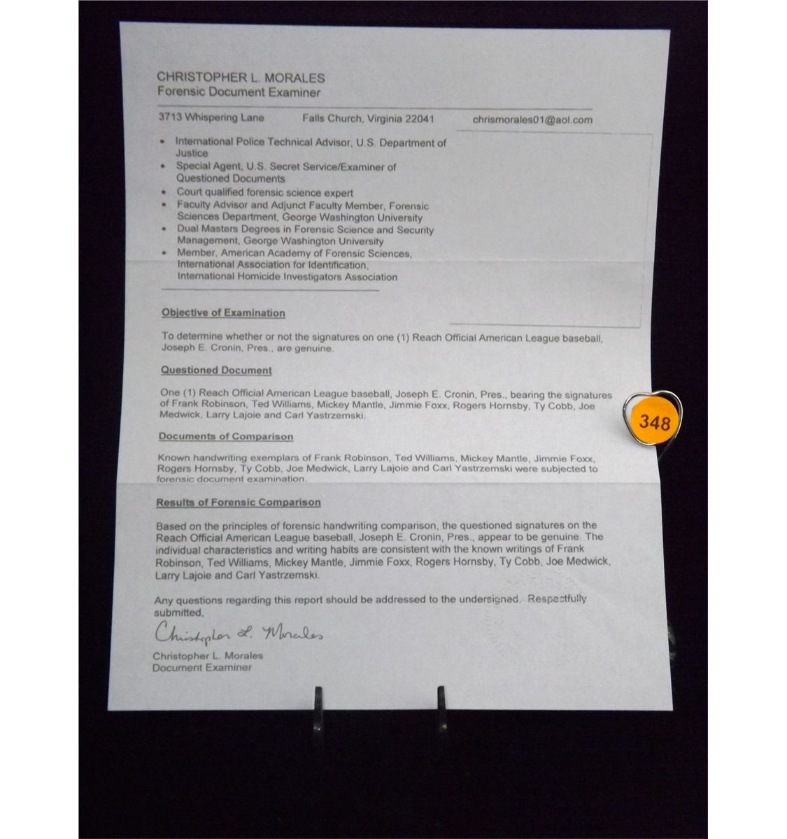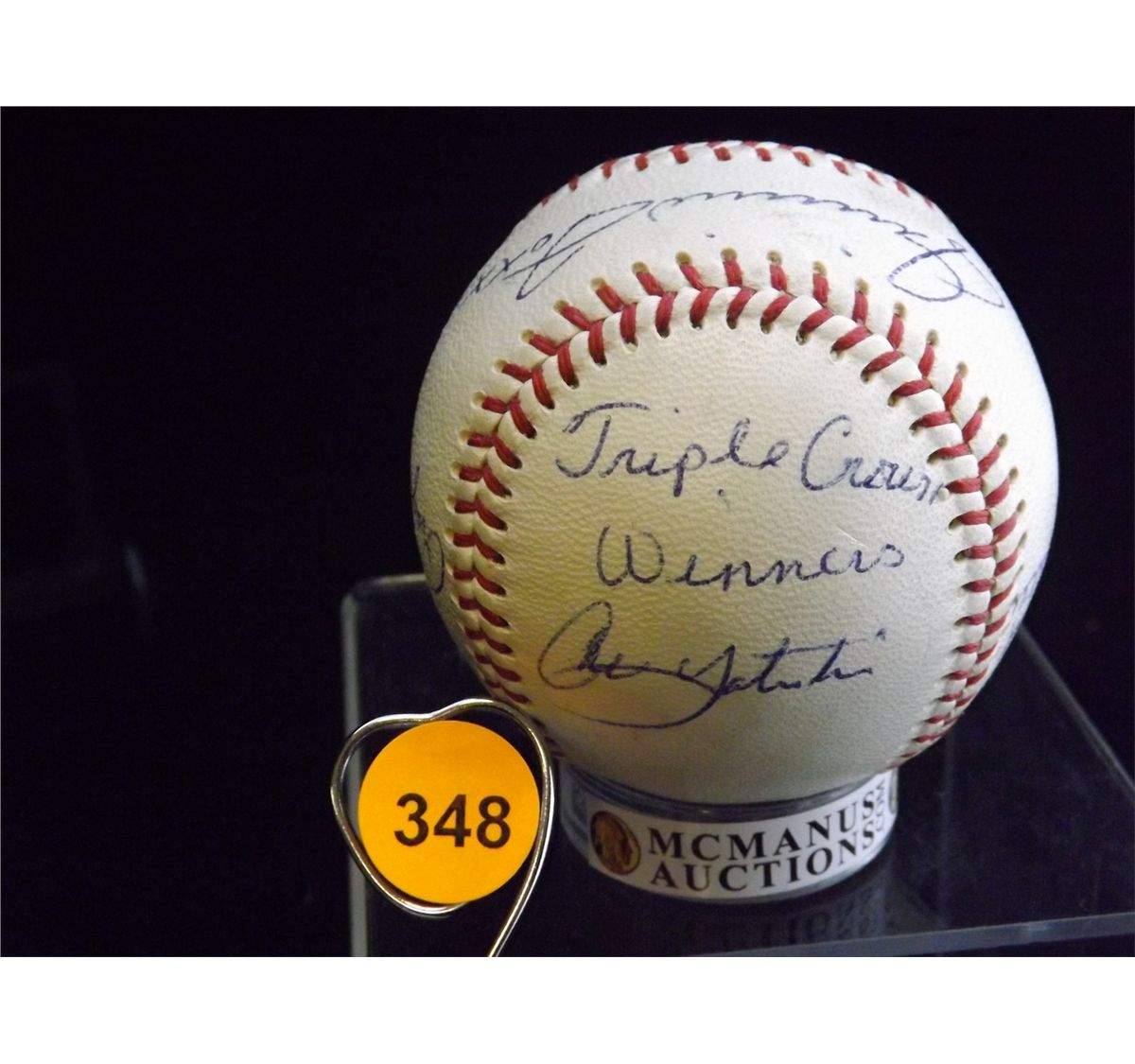 Triple Crown Winners Autographed Baseball. Reach Official American League Baseball Autographed by Frank Robinson, Ted Williams, Mickey Mantle, Jimmie Foxx, Rogers Hornsby, Ty Cobb, Joe Medwick, Larry Lajoie and Carl Yastrzemski. Appraised or estimated retail value $28,000. COA by Christopher Morales. All Sales Final. Please see terms and conditions of auction.