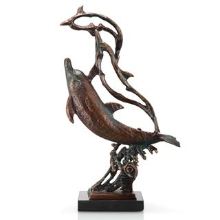 Triple Dolphin Cast Iron Sculpture - 15.5" X 8" X 4" - Lost Wax Cast- Mounted On Marble Base