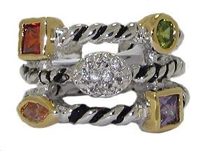 Triple Row Cz Cable Ring Austrian Crystal Dark Multi **|**|** Triple Row Cz Cable Ring Austrian Crystal Dark Multi