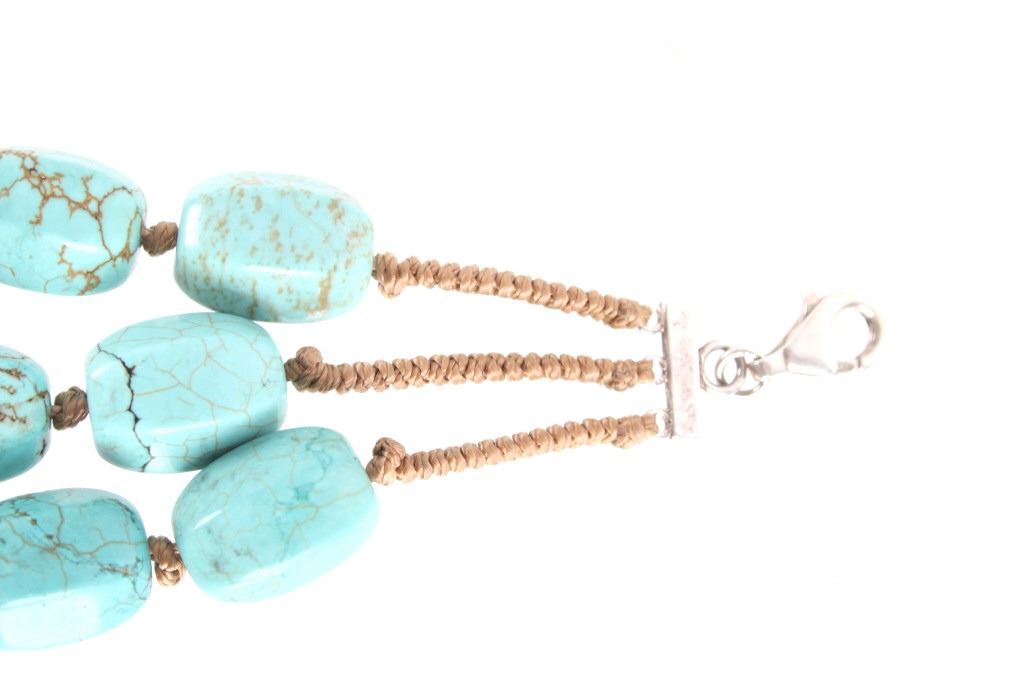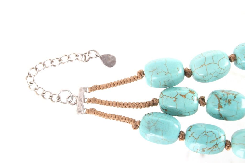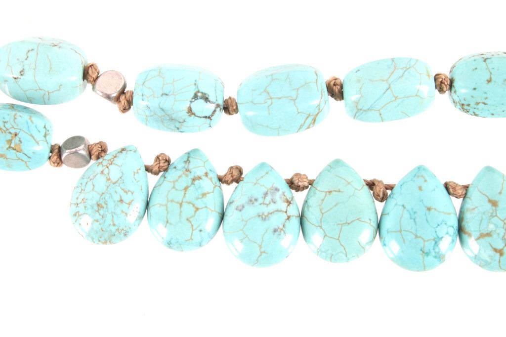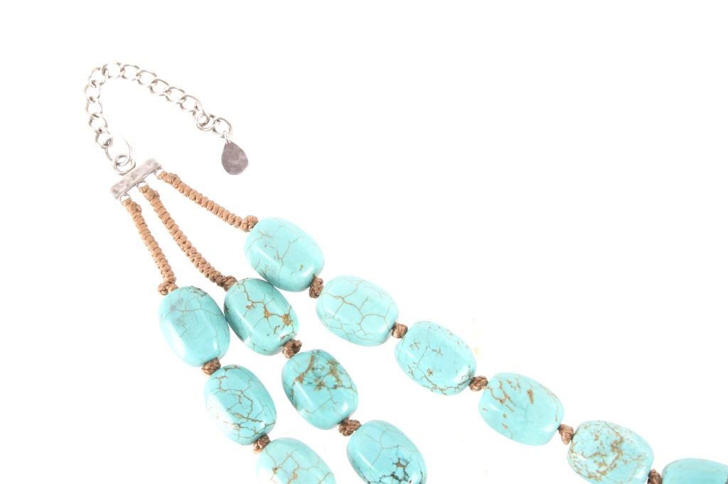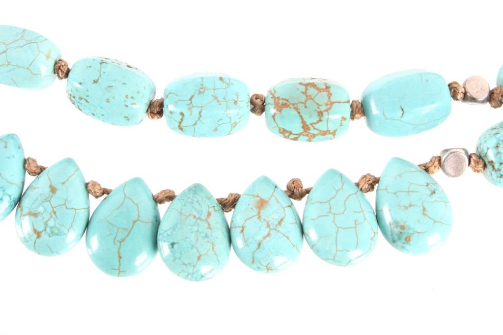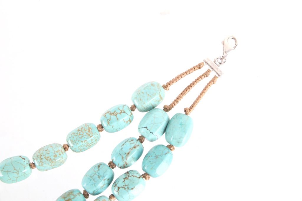 This lot includes a Navajo Triple Strand Turquoise Sterling Silver Necklace, 925 and artist hallmark stamped. Barrel shaped turquoise stones make up the majority of the necklace with eleven (11) tear drop shaped stones adorning the bottom of the longest strand. The beautiful stones have a spiderweb type matrix of mostly brown, but also some black and blue, and are strung on sturdy Navajo cord that is knotted and braided to form a soft comfortable neck piece. Native Americans associate turquoise with the blue sky and the green earth. It is known as the ’Traveler’s Stone’ and is prized by those who travel by land. They believed that wearing turquoise resulted in happiness and security. Is said to possess healing and protective powers, attracts luck, love, and money. Turquoise helps to ground the spirit while keeping its connection to the infinite open. Turquoise allows the energy path to remain clear. In fact, many First Nation people hold the belief that by wearing turquoise the human mind becomes one with the universe. Sterling stamp 925 on lobster claw clasp, artist hallmark stamp located on chain link medallion at clasp. This turquoise necklace is in good overall condition, patina exhibited on Sterling portions, no obvious marring noted. Stones measure approximately 1/2" to 3/4" in length each, total length of necklace is 10.5"L