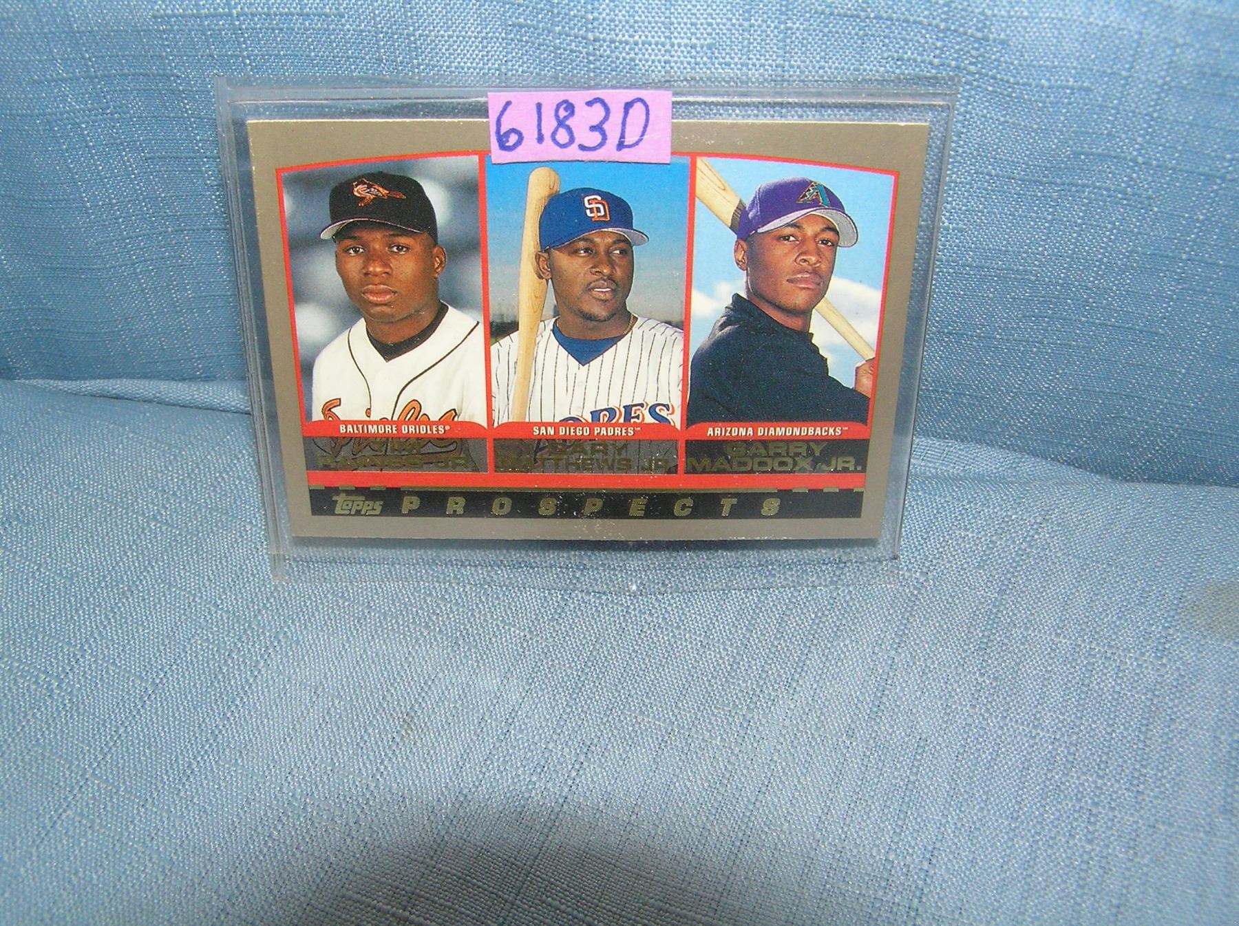 Triple rookie card includes Tim Raines, Jr., Gary Maddox Jr. and Gary Matthews Jr.est. value $25.00-$30.00