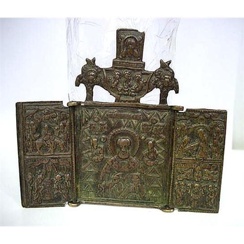 <tr><td>Title:Triptych Russian bronze icon saints 1840s</td></tr>