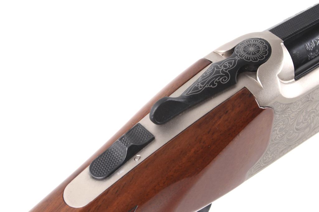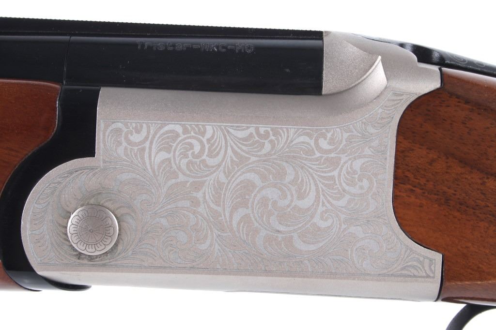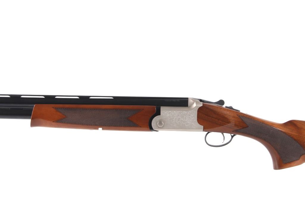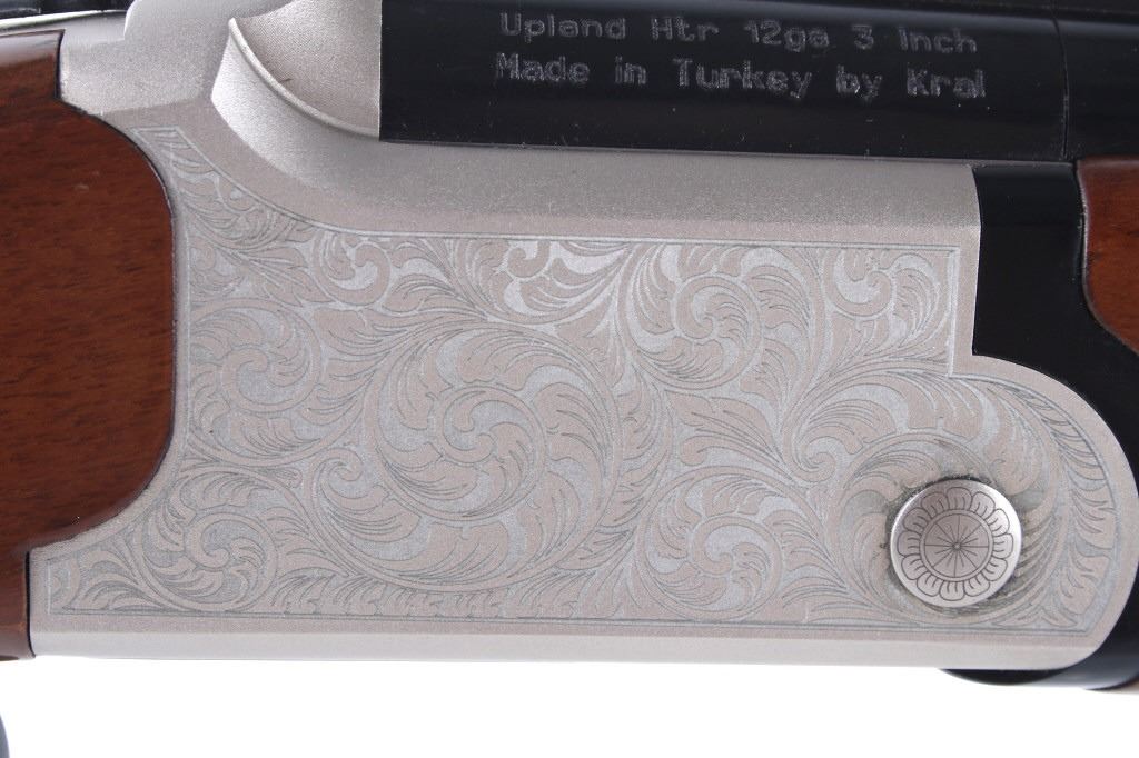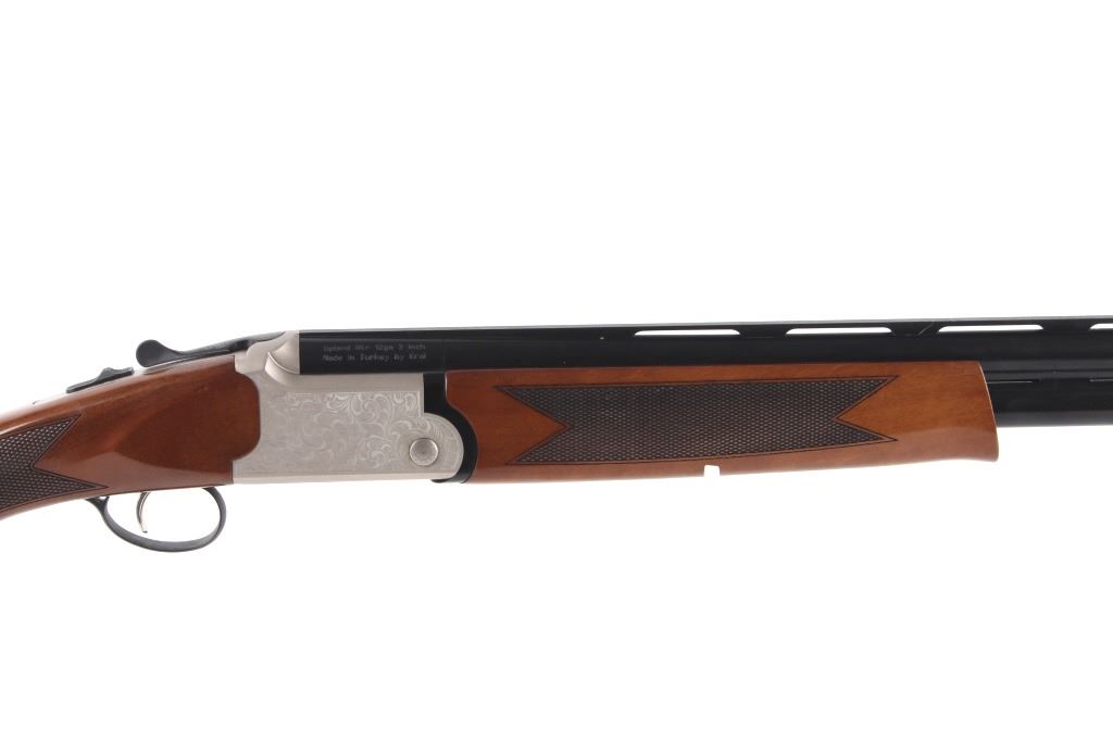 Featured in this lot is a TriStar double barreled over- under Underland Htr shotgun chambered in 12 gauge. The shotgun displays a 28" long double over-under barrel, wood stock, and etched frame. The underside of the frame is marked "TriStar". The left side of the barrel is marked "Tristar - NKC - MO" with the right side of the piece marked "Upland Htr 12ga 3 Inch Made in Turkey by Kral". The shotgun shows good condition overall and is in what could be considered close to brand-new condition. The shotgun weighs 6lbs 4oz. Serial Number: KRU012443. This is a modern firearm and requires a FFL transfer or NICS background check.