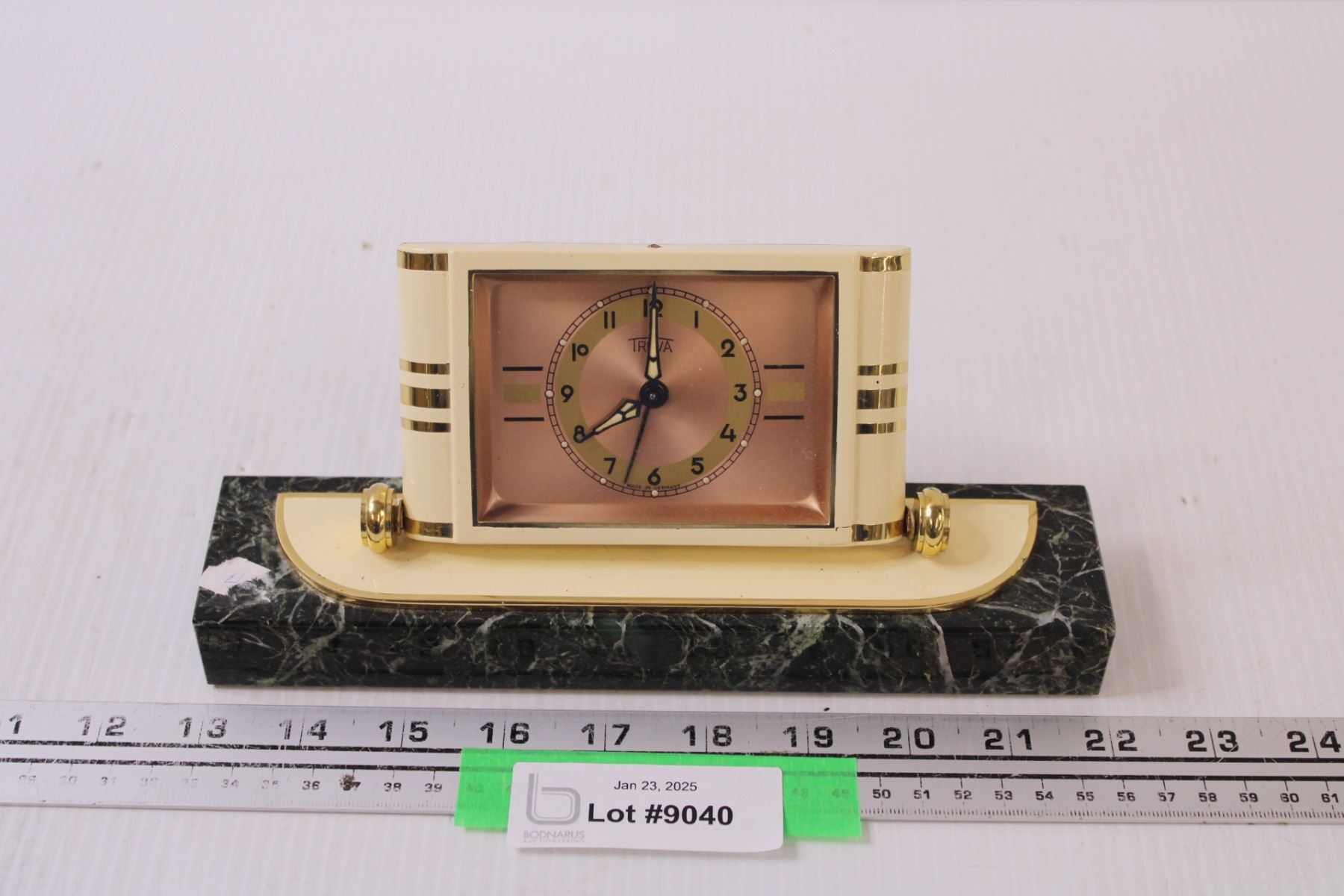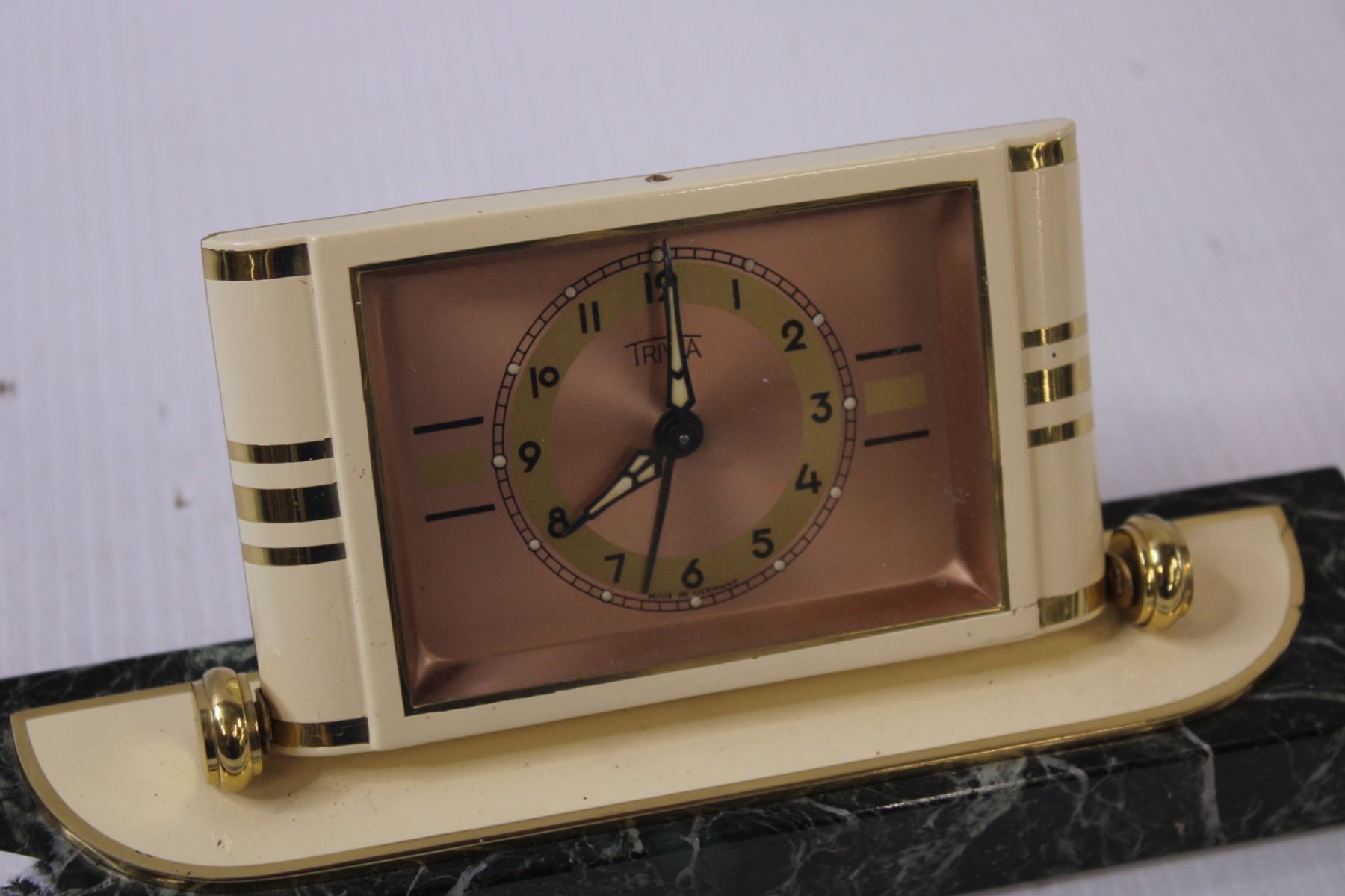 Triva Marble Desk Clock - Made in Germany - As Is - Winding Clock - 9" Long