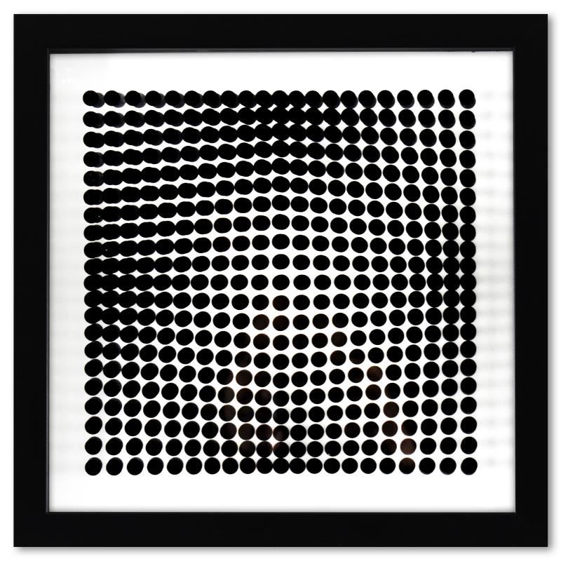 "Trois Dimensions Optique de la série Cinetiques" is a dimensional artwork, published in 1973, by Victor Vasarely (1908-1997). This piece comes custom framed. This piece comes with a catalogue raisonne of Vasarely's work with forward from Marcel Joray (paper back, published 1976). Includes Letter of Authenticity. Measures approx. 11.5" x 11.5" (frame), 9" x 9" (image).