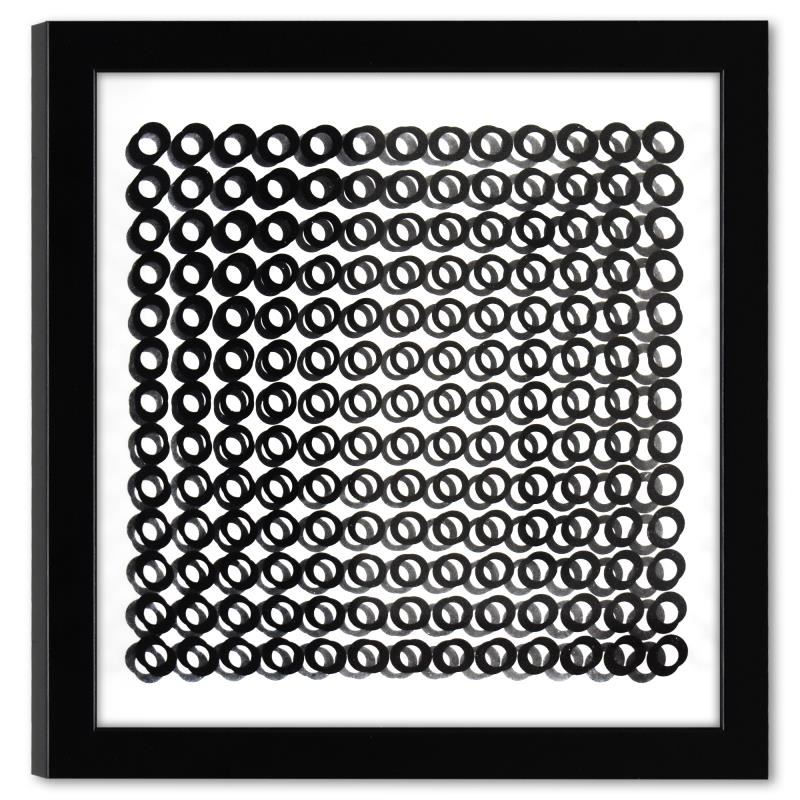 "Trois Dimensions Optique de la série Cinetiques" is a dimensional artwork, published in 1973, by Victor Vasarely (1908-1997). This piece comes custom framed. This piece comes with a catalogue raisonne of Vasarely's work with forward from Marcel Joray (paper back, published 1976). Includes Letter of Authenticity. Measures approx. 11.5" x 11.5" (frame), 9" x 9" (image).
