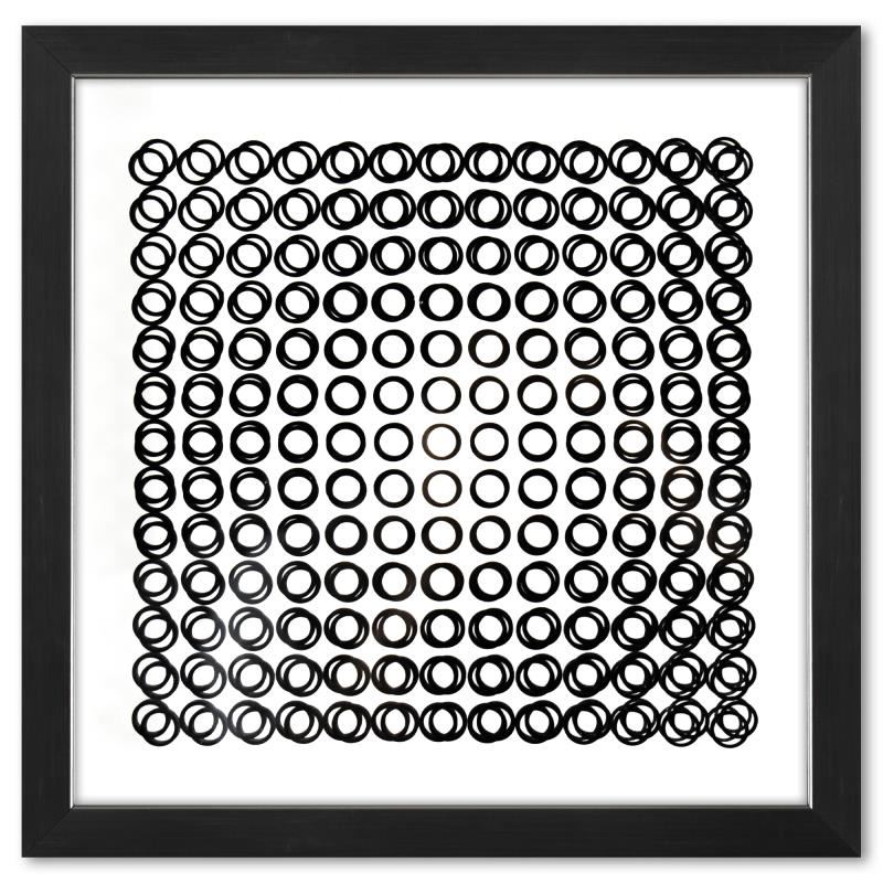 Trois Dimensions Optique de la série Cinetiques is a dimensional artwork, published in 1973, by Victor Vasarely (1908-1997). This piece comes custom framed, with a letter of authenticity and with a 1976 Vasarely paperback. Measures approx. 11.5 x 11.5 (frame), 9 x 9 (image).